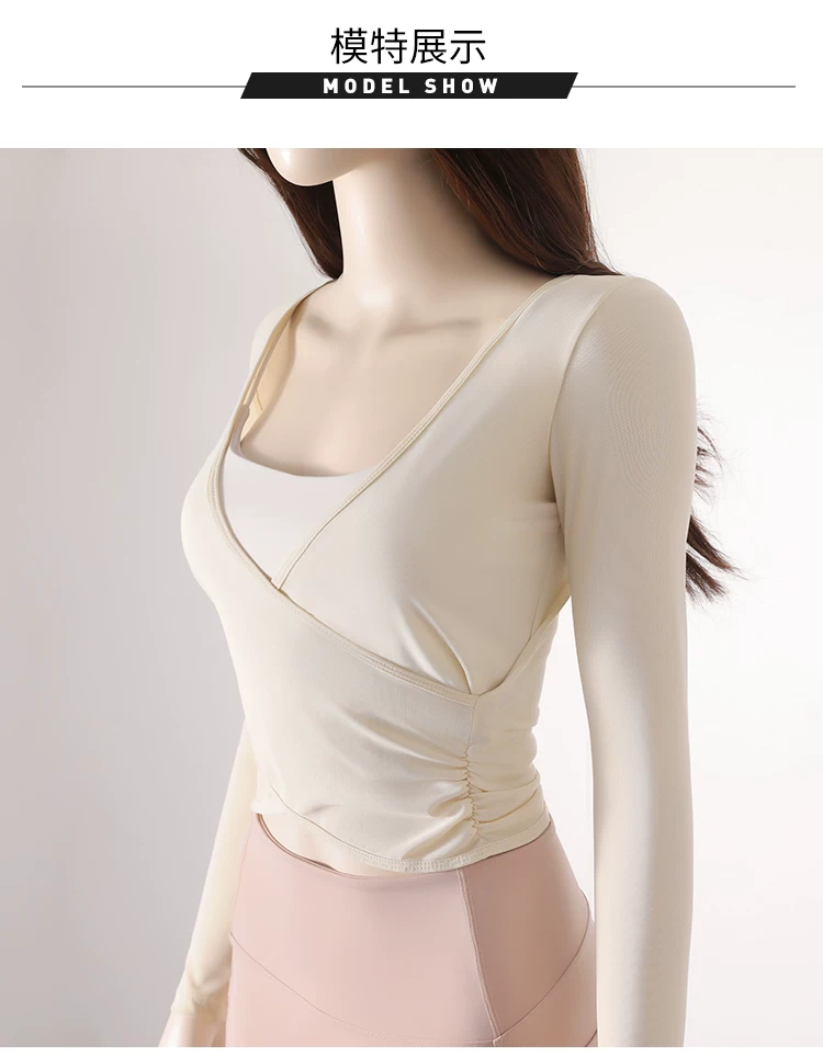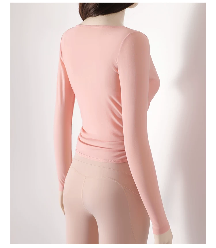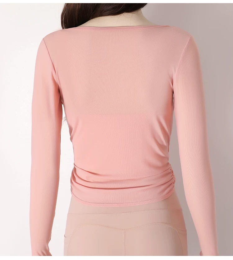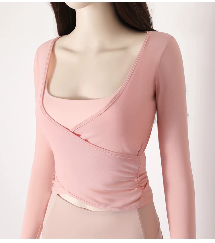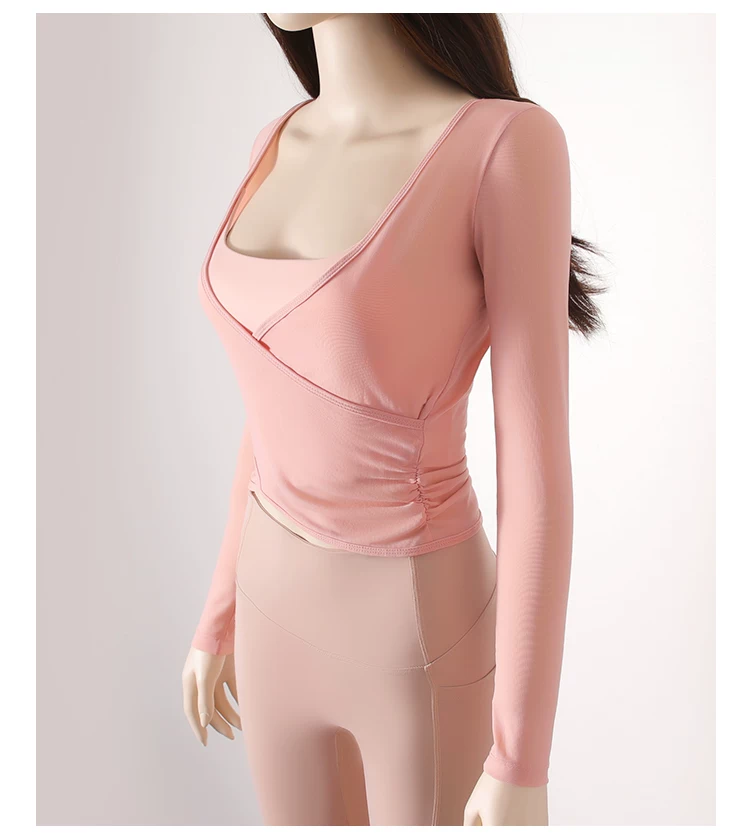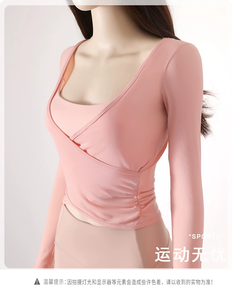 - Áo thun tập yoga dài tay xếp ly chéo dành cho nữ, áo tập thể thao ôm sát tạo cảm giác thoải mái như không mặc, áo khoác ngoài tập yoga nhanh khô cho mùa thu