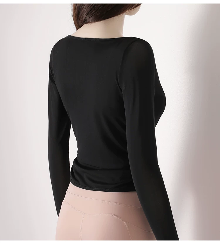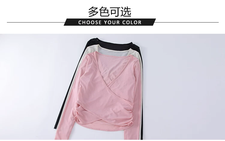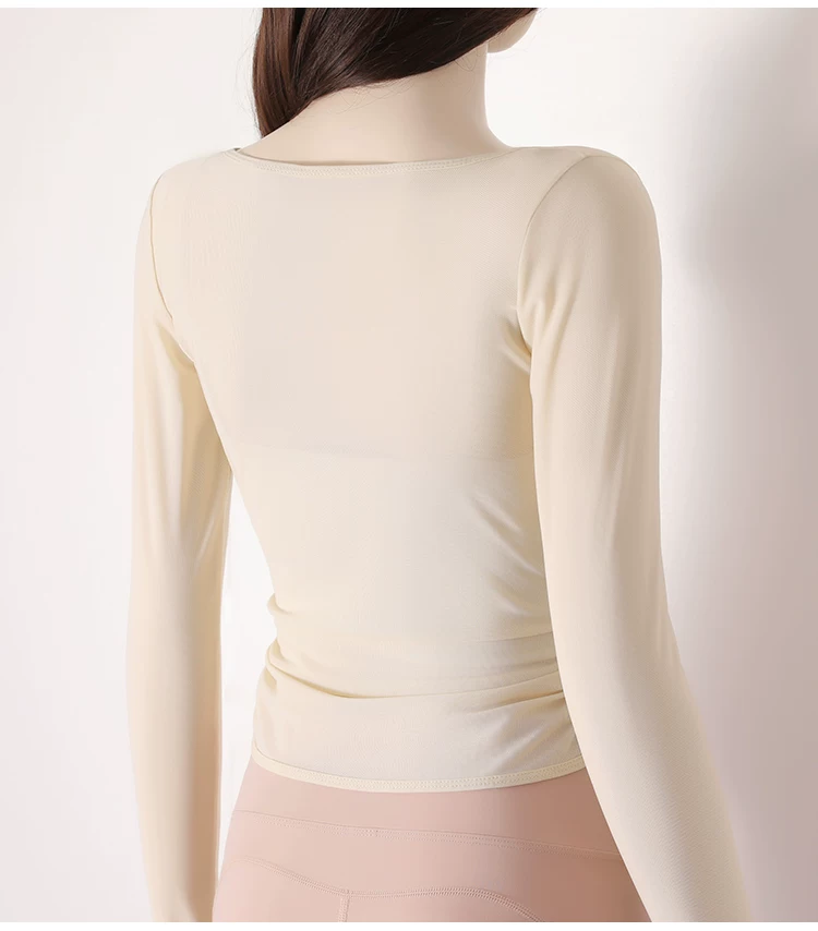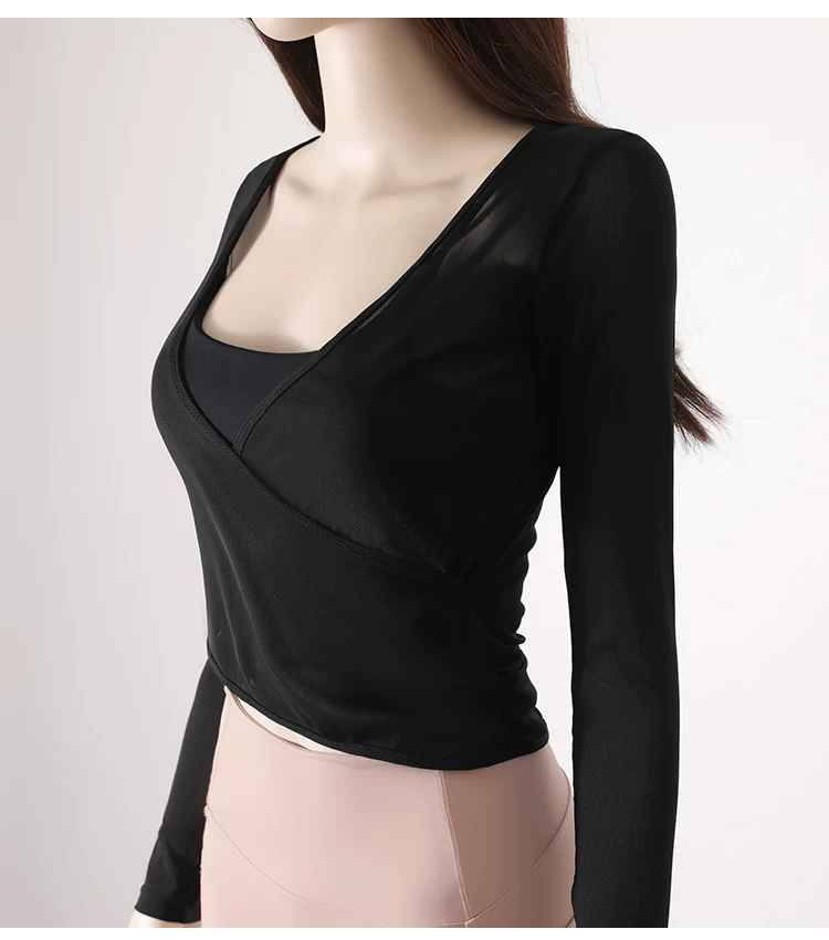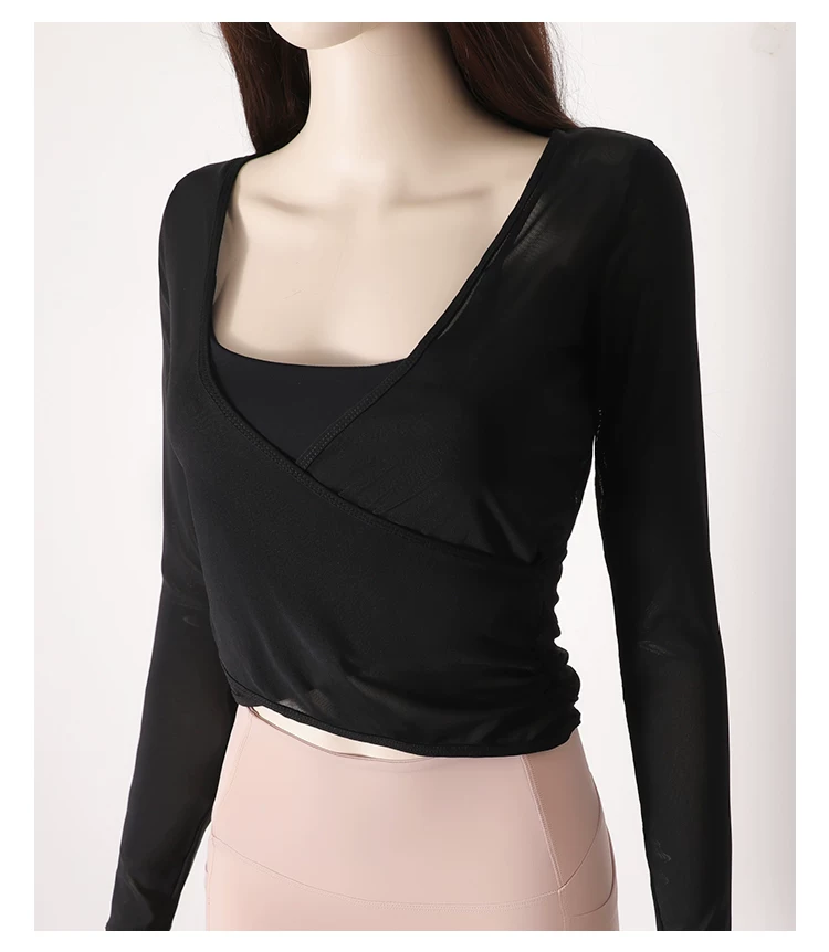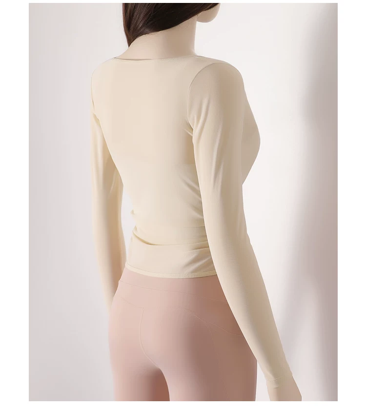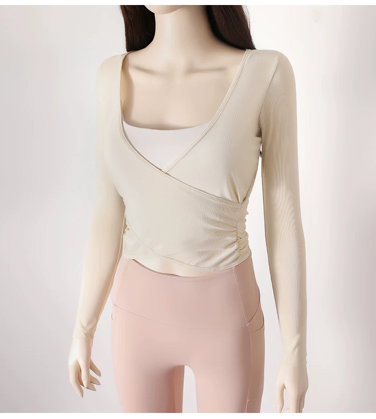 - Áo thun tập yoga dài tay xếp ly chéo dành cho nữ, áo tập thể thao ôm sát tạo cảm giác thoải mái như không mặc, áo khoác ngoài tập yoga nhanh khô cho mùa thu