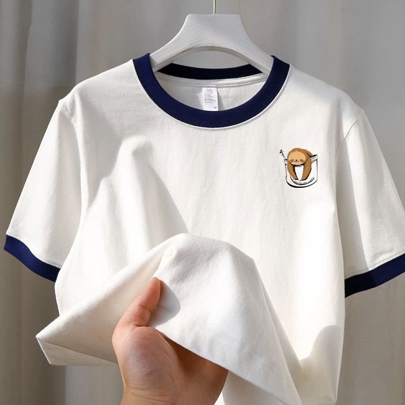 - Áo thun tay ngắn in họa tiết đơn giản, phối màu tương phản, kiểu dáng mới đa năng, hàng xuất khẩu, giá rẻ.