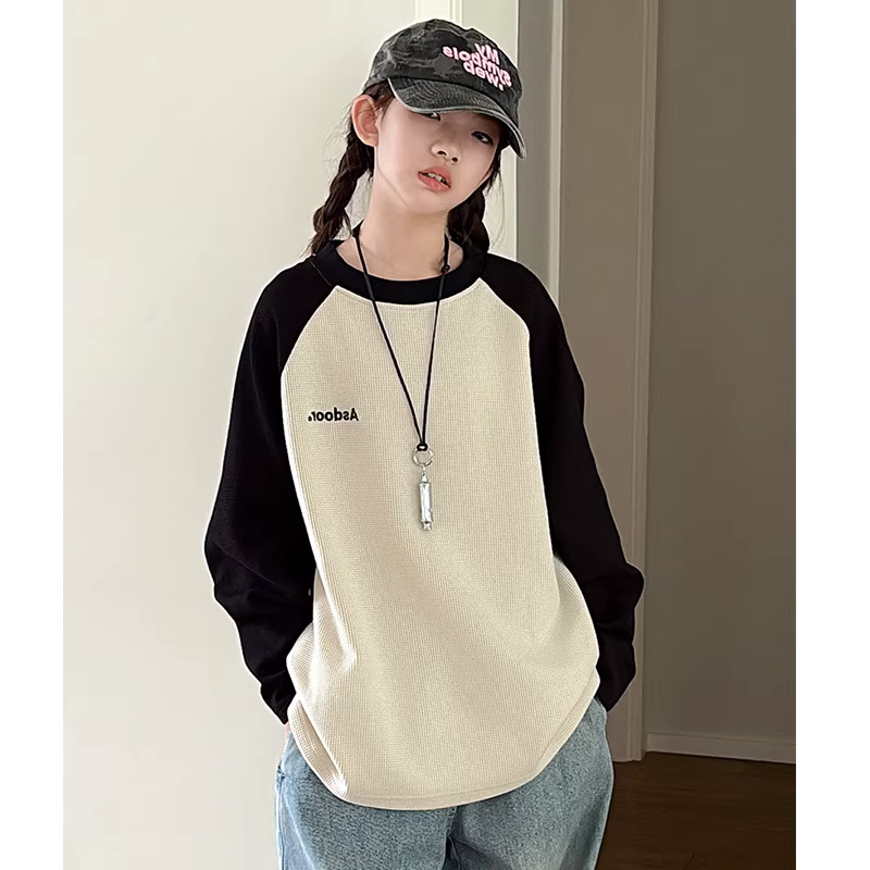 - Áo thun tay raglan bé trai và bé gái 25 mùa thu phong cách mới áo thun dài tay giản dị hàng đầu quần áo trẻ em áo sơ mi cơ bản