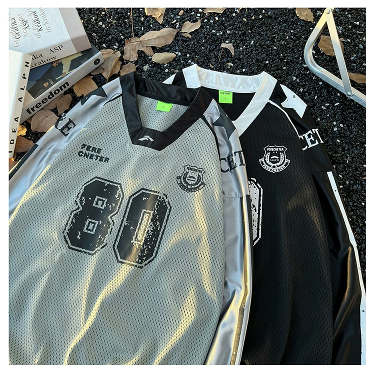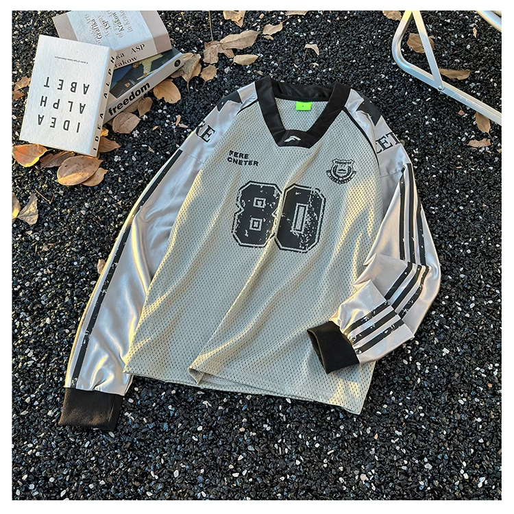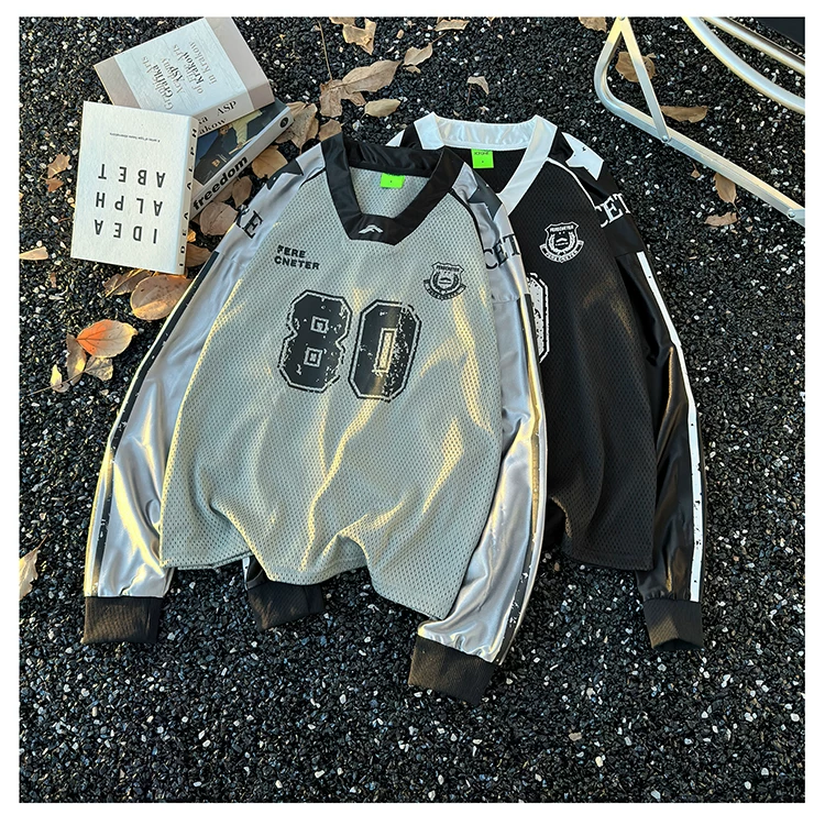 - Áo thun thể thao cổ chữ V kiểu Mỹ dành cho nam mùa thu hợp thời trang cleanfit áo thun dài tay mát mẻ bằng lụa băng áo bóng rổ