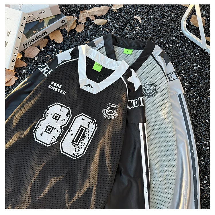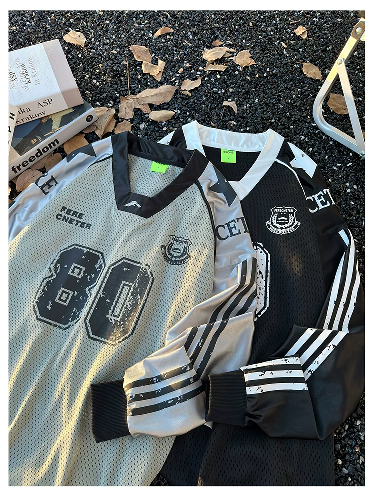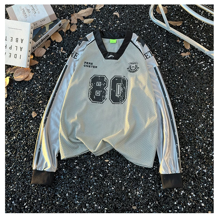 Áo thun thể thao cổ chữ V kiểu Mỹ dành cho nam mùa thu hợp thời trang cleanfit áo thun dài tay mát mẻ bằng lụa băng áo bóng rổ