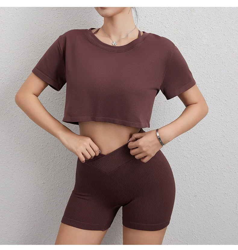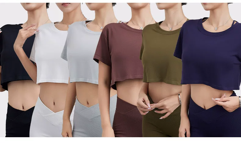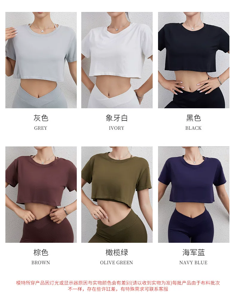 - Áo thun thể thao Jiumai Yipin dành cho nữ, áo crop top ngắn rộng rãi, nhanh khô, áo tập yoga, áo chạy bộ ngắn tay.