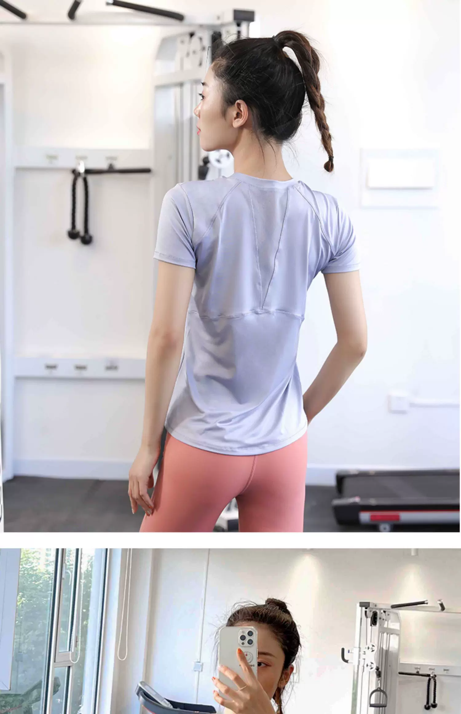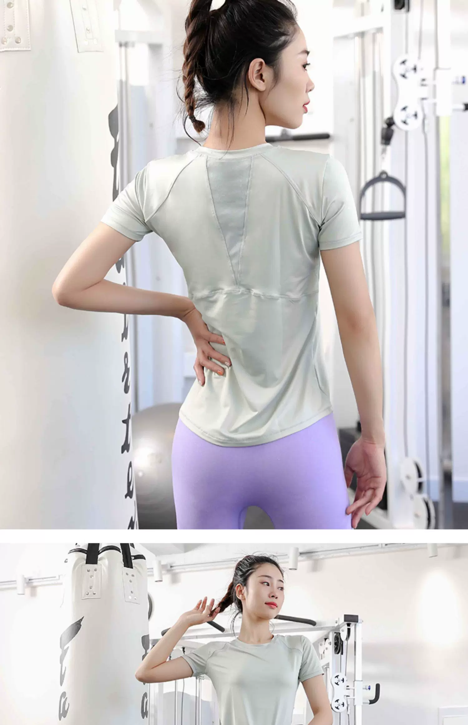 - Áo thun thể thao nữ, áo tập yoga co giãn ôm sát, nhanh khô, áo tập gym ngắn tay lưng lưới khoét đẹp