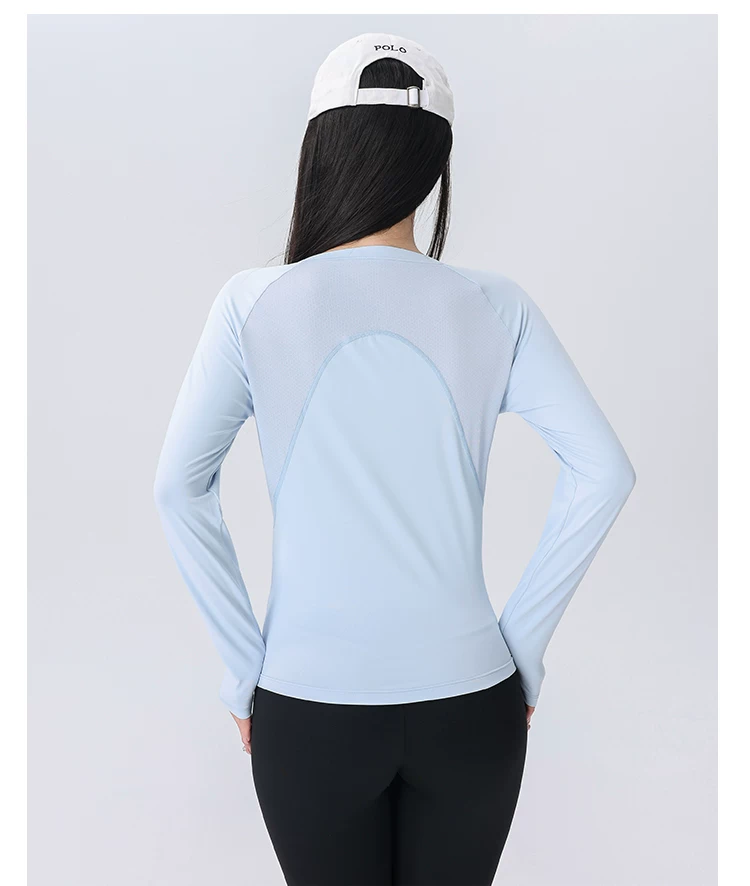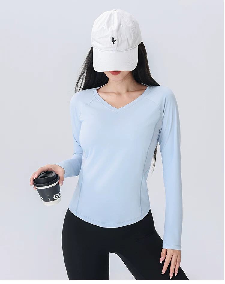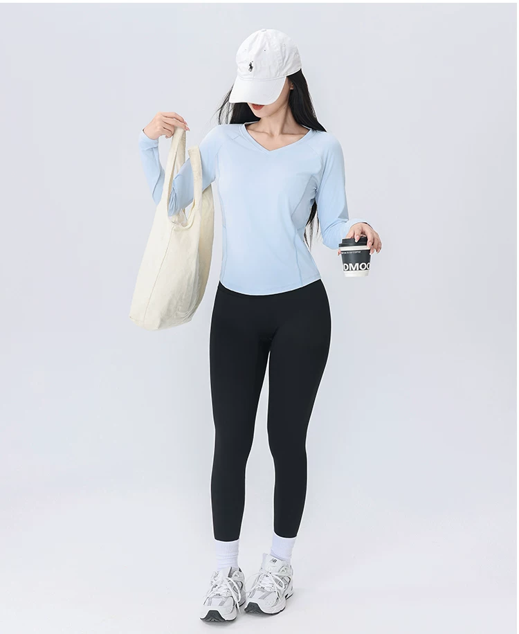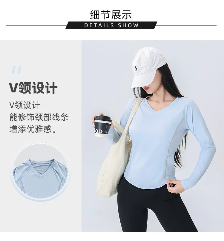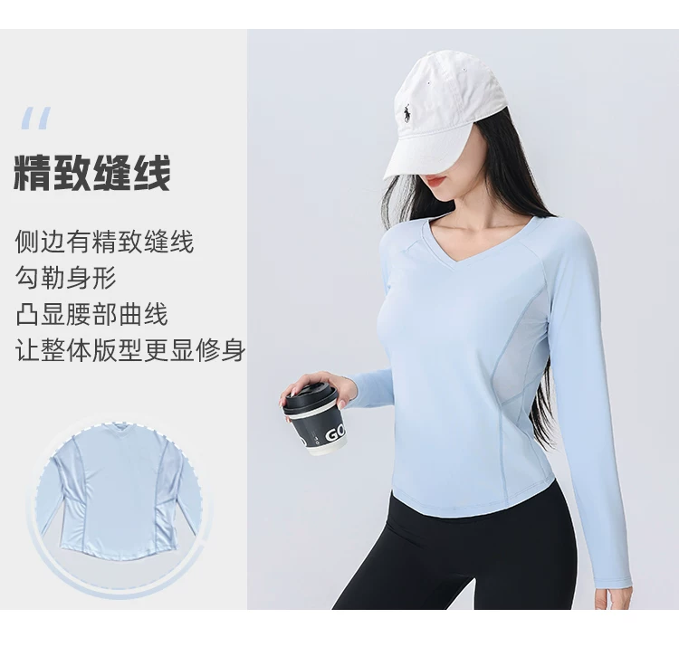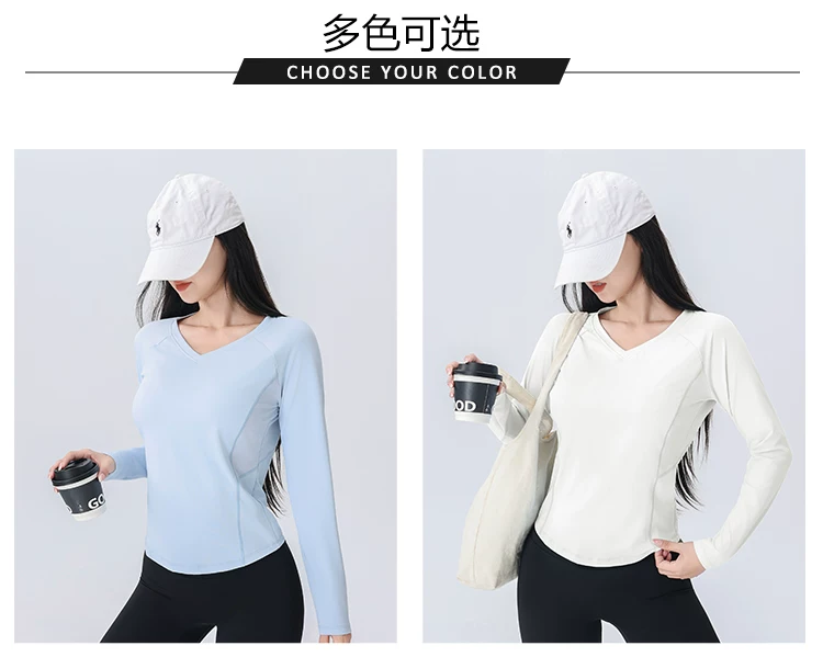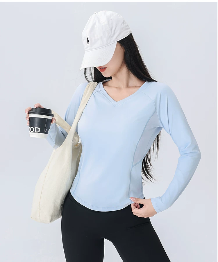 - Áo thun thể thao nữ tay dài phối lưới cổ chữ V, chất liệu nhanh khô, mẫu mới thu 2026, dùng cho tập luyện chạy bộ