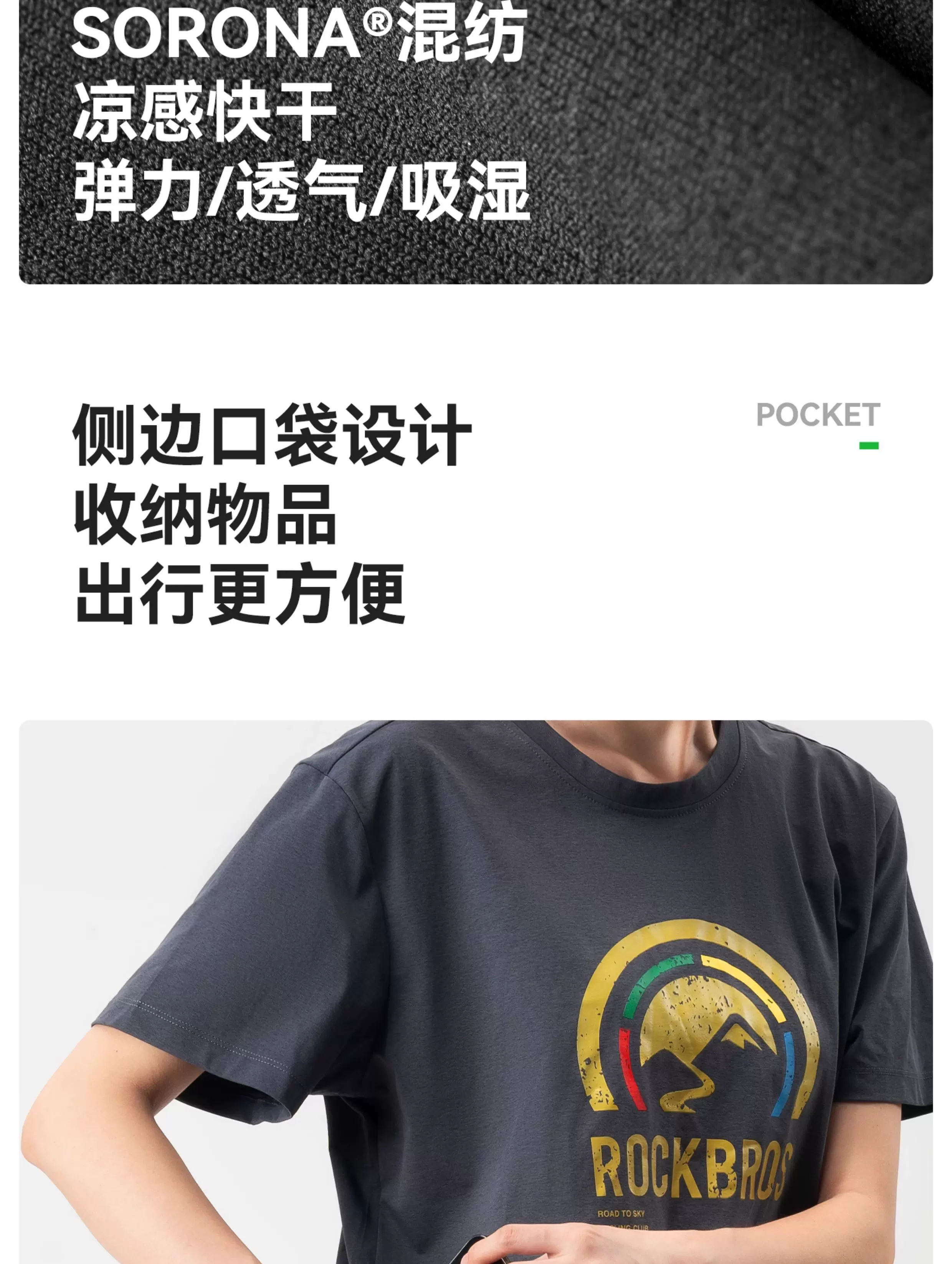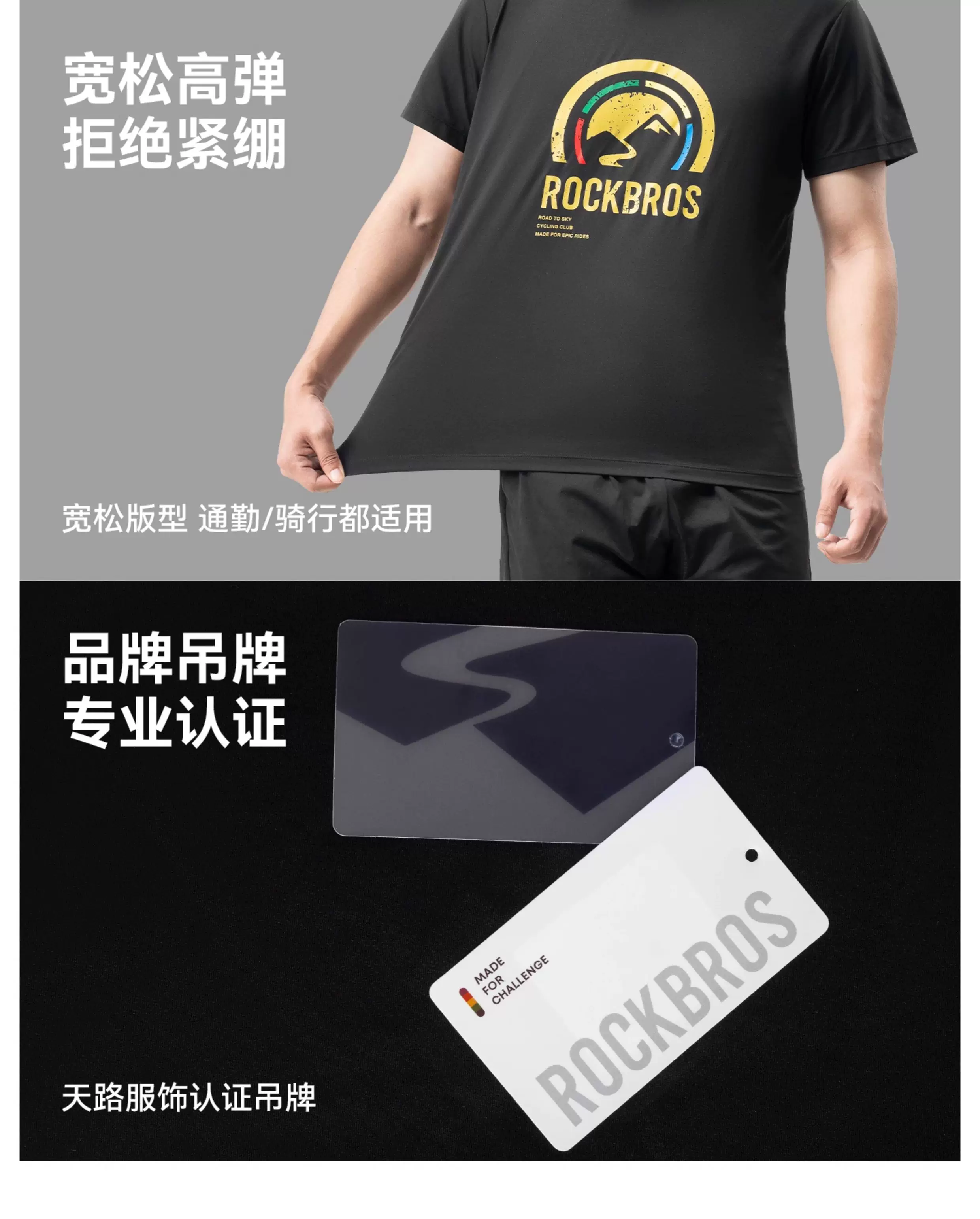 Áo thun thể thao Rock Brothers Sky Road thoáng khí, nhanh khô, mát mẻ, tay ngắn, unisex, áo thun văn hóa đạp xe
