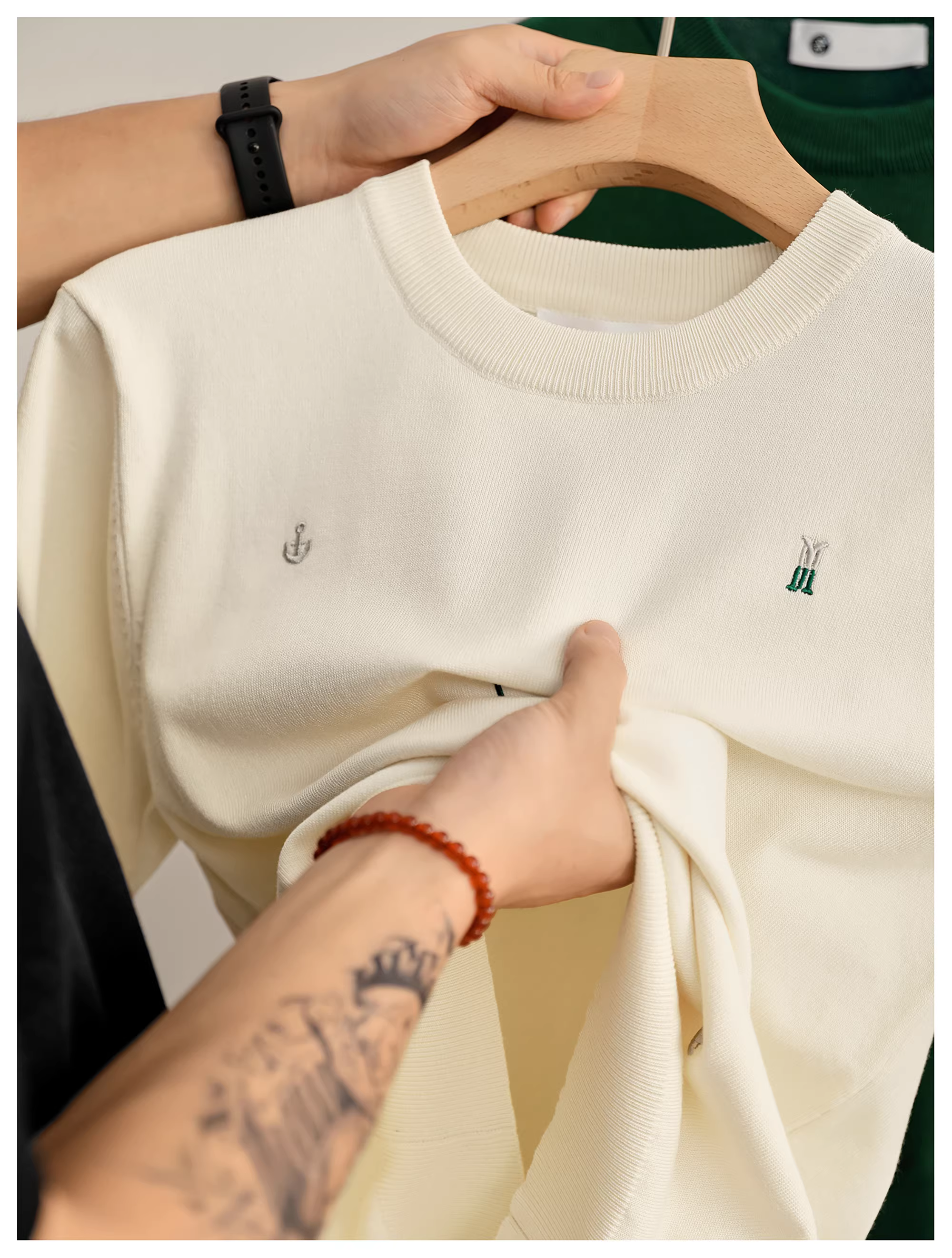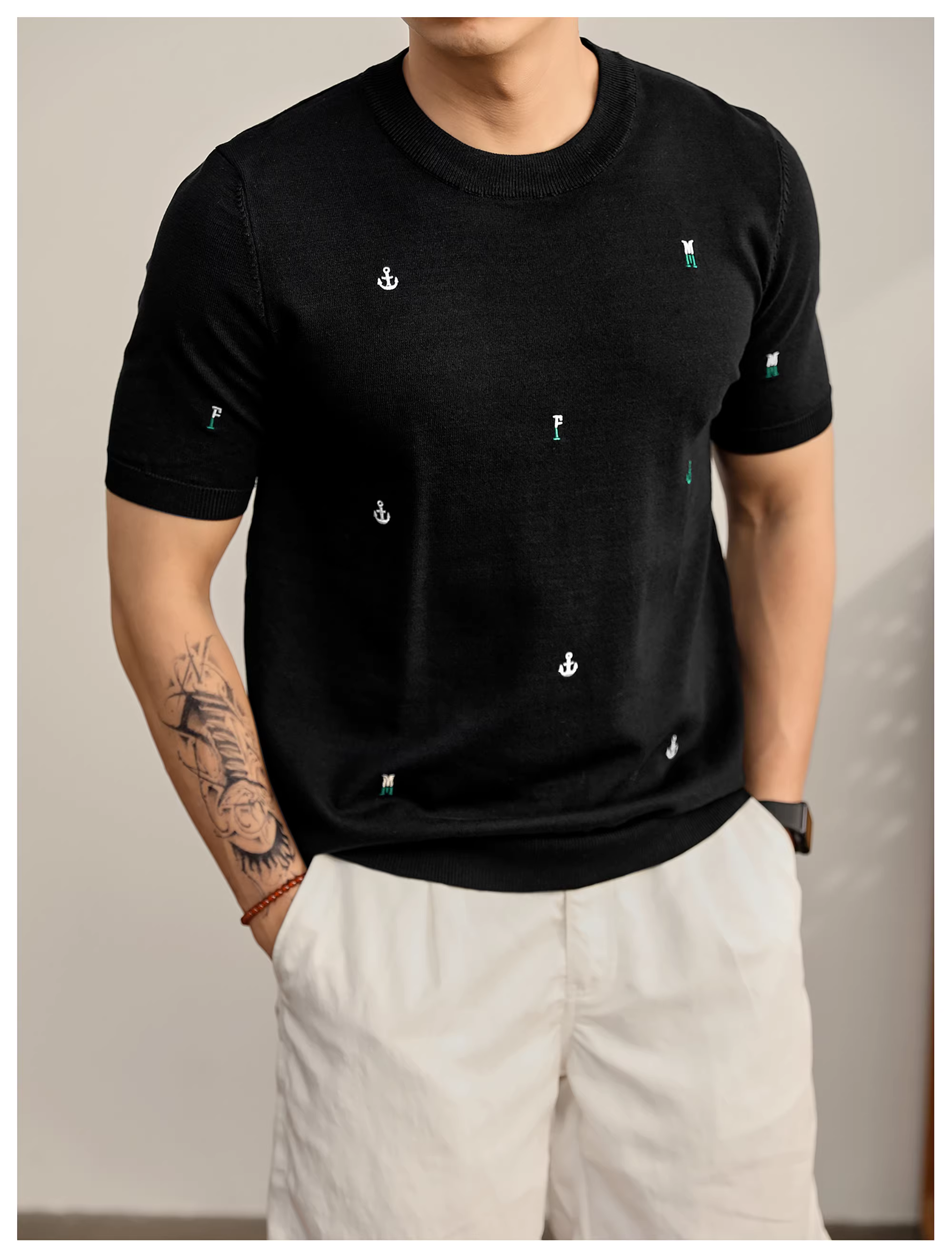 - Áo thun thêu chữ sáng tạo phong cách retro tiền cổ của LUUD dành cho nam, áo sơ mi ngắn tay cổ tròn thời trang mùa hè mát mẻ bằng lụa