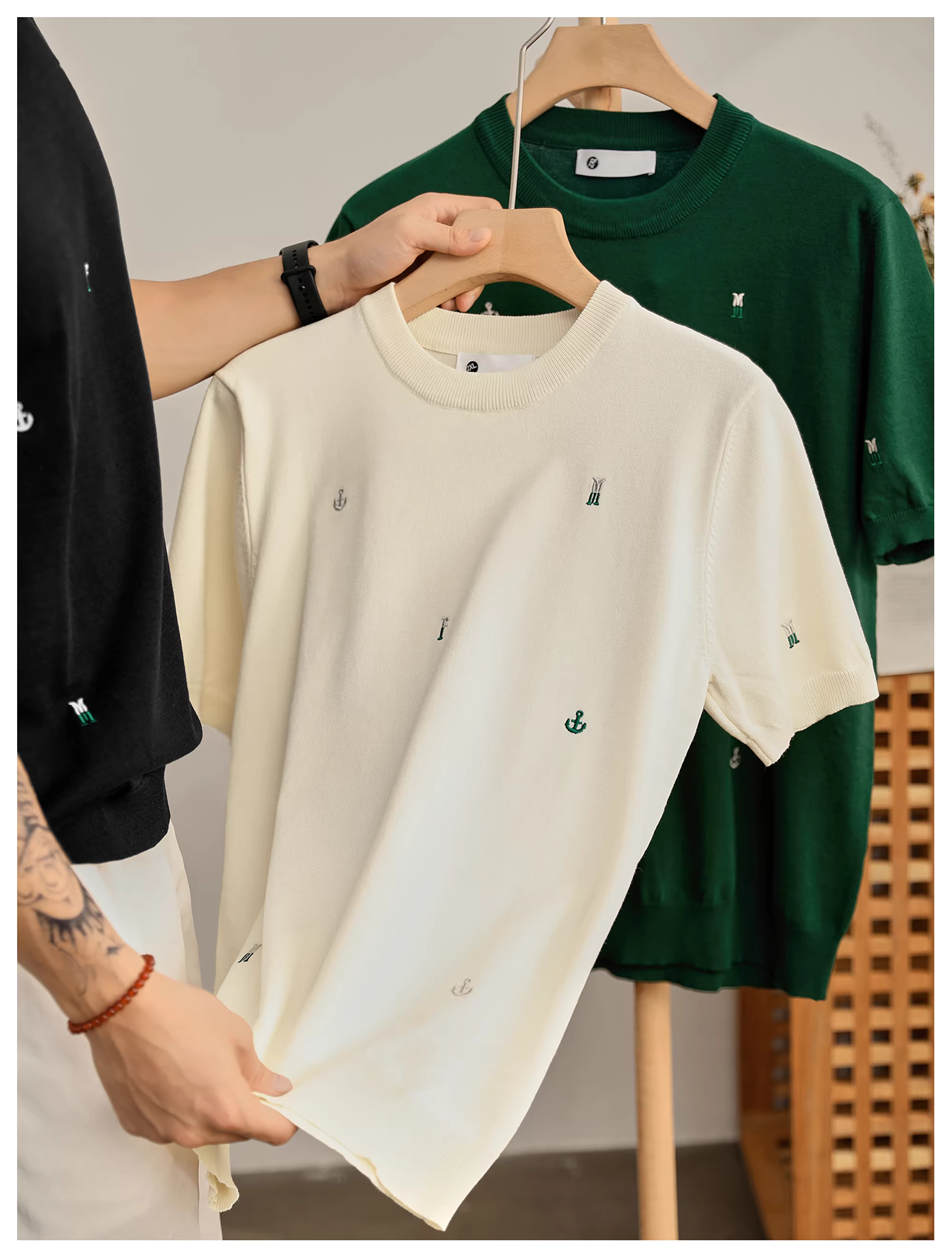 Áo thun thêu chữ sáng tạo phong cách retro tiền cổ của LUUD dành cho nam, áo sơ mi ngắn tay cổ tròn thời trang mùa hè mát mẻ bằng lụa