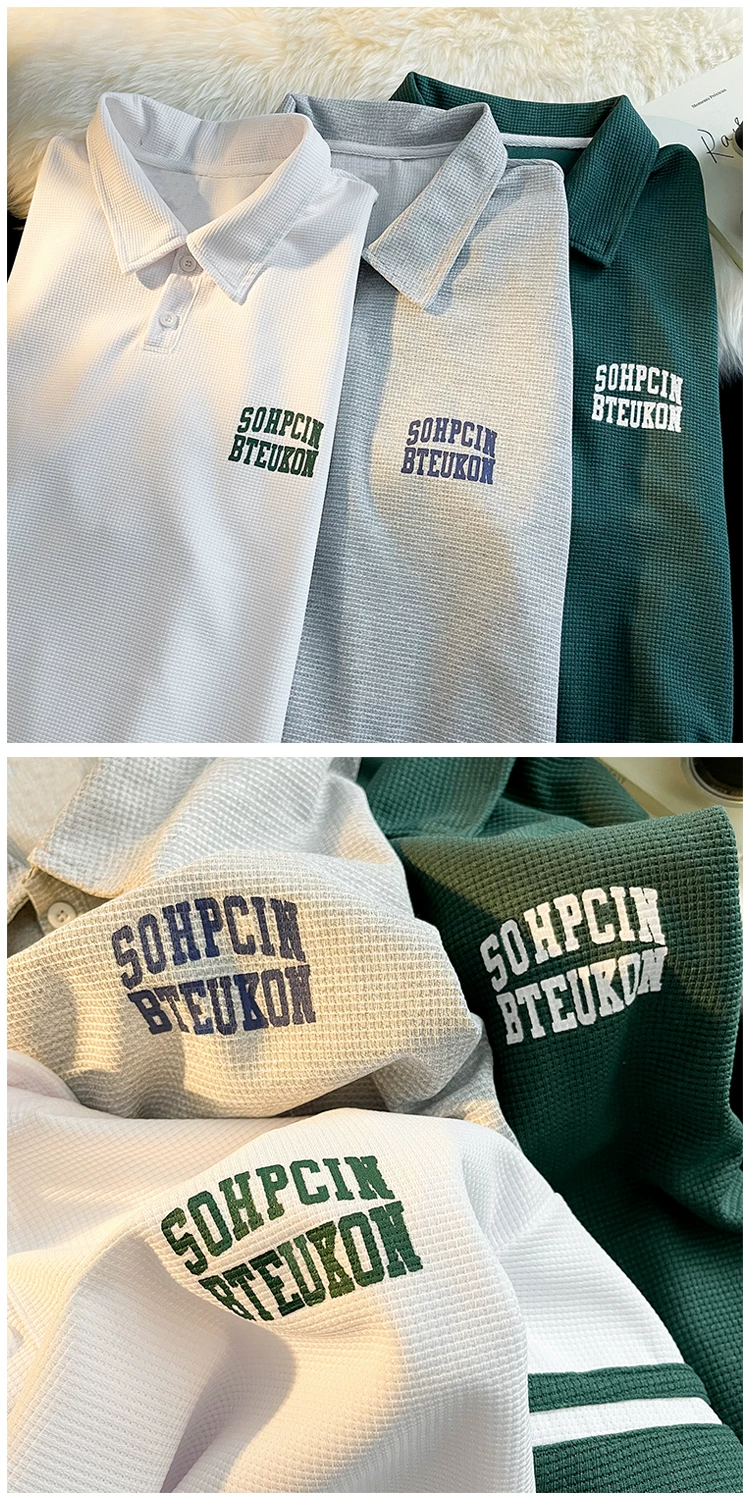 - Áo thun waffle kiểu Mỹ dành cho nam, áo polo tay ngắn dáng rộng, thời trang mùa hè, đa năng, áo đôi tay lửng.