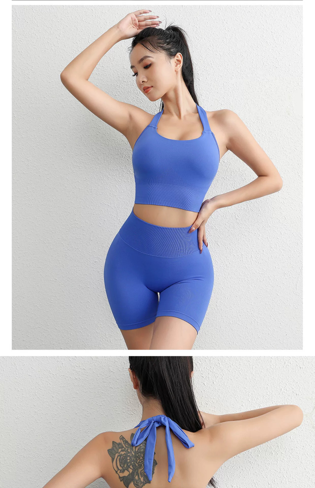 Áo vest cổ halter buộc dây dành cho nữ, áo lót nâng ngực chống sốc, áo ngực thể thao gợi cảm, áo ngực tập yoga, áo khoác ngoài tập thể dục.