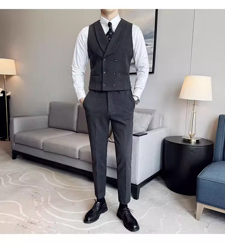 Áo vest len nam hai hàng khuy mùa thu đông, vest công sở lịch lãm đa năng, kiểu dáng ôm body thời thượng, vest phù rể