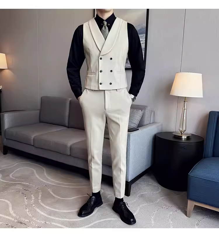 - Áo vest len nam hai hàng khuy mùa thu đông, vest công sở lịch lãm đa năng, kiểu dáng ôm body thời thượng, vest phù rể