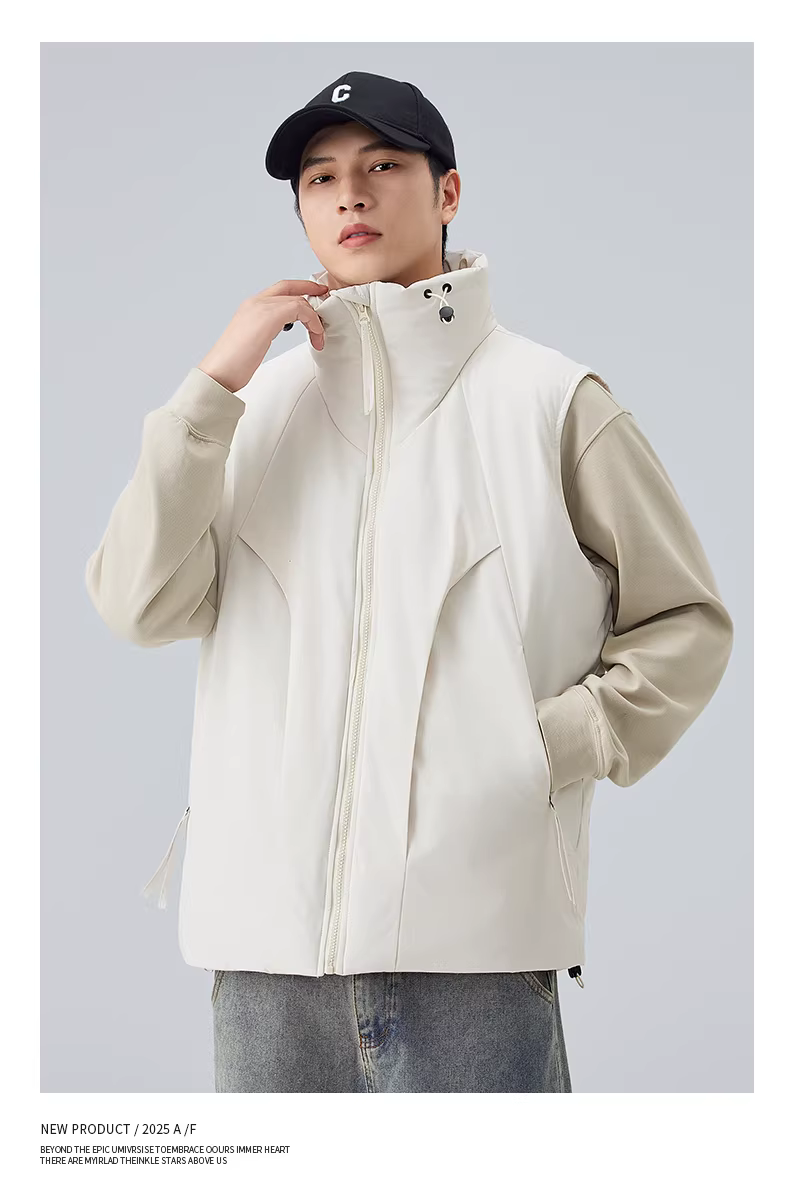 Áo vest nam cổ đứng dày dặn, áo khoác vest không tay ấm áp kiểu Mỹ mùa đông