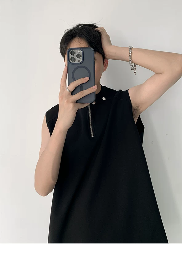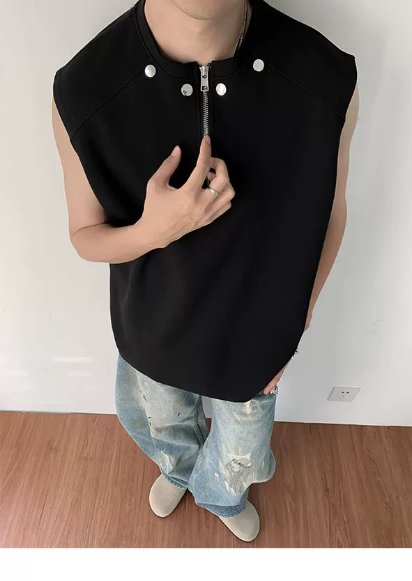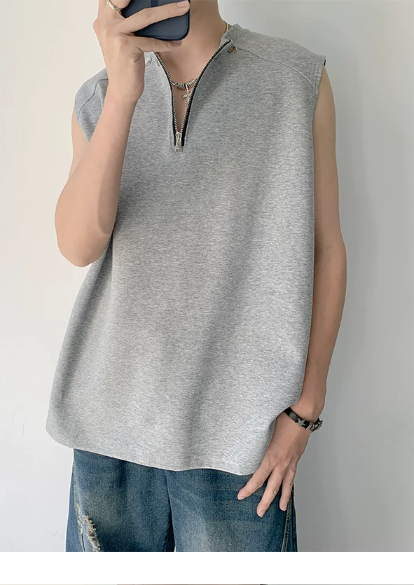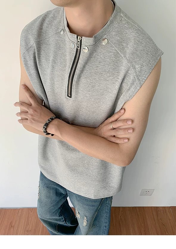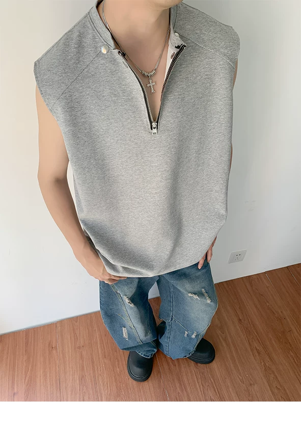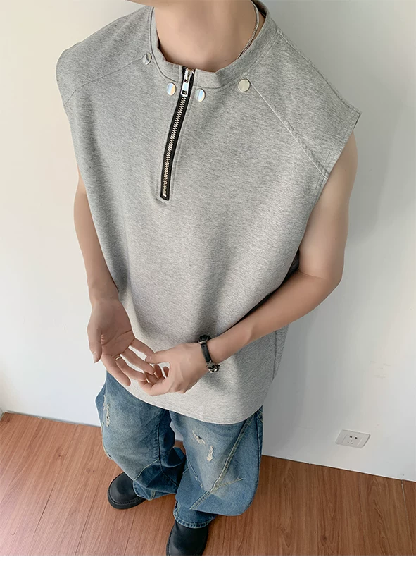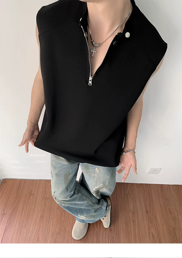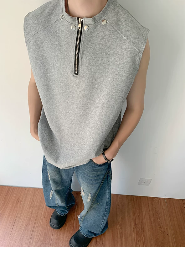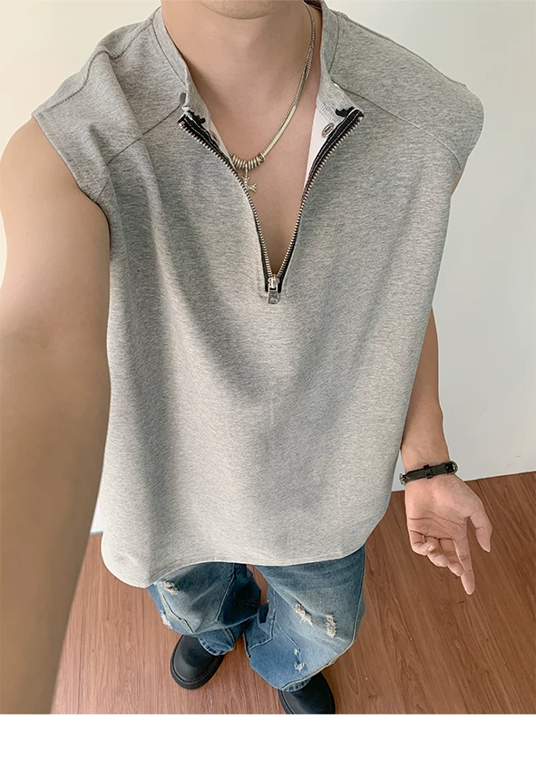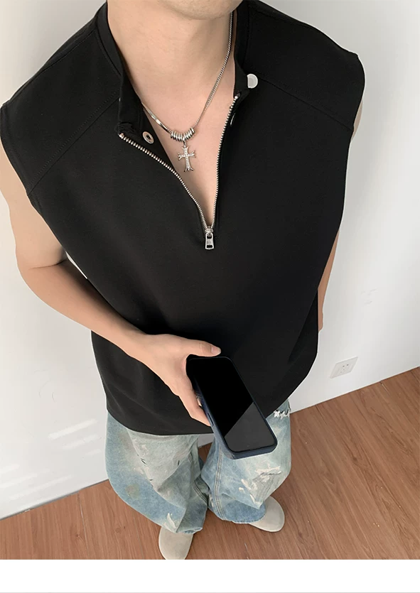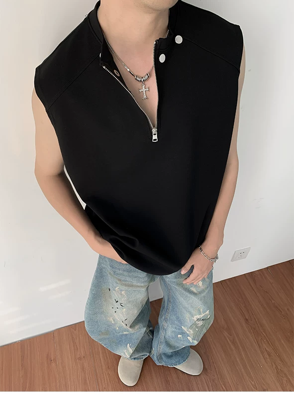 Áo vest nửa khóa kéo dành cho nam, thiết kế thời trang mùa hè, áo thun không tay, kiểu dáng thể thao gọn gàng, cá tính.