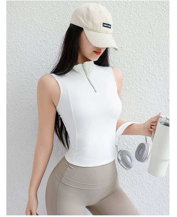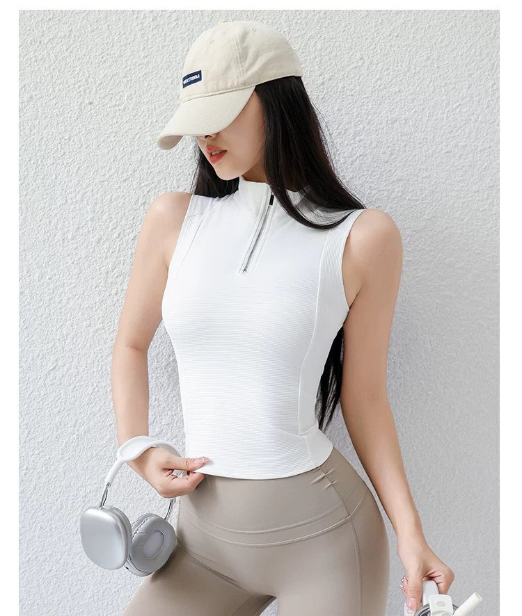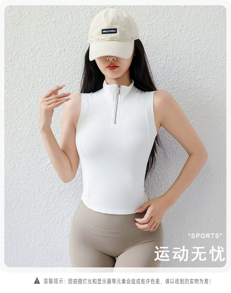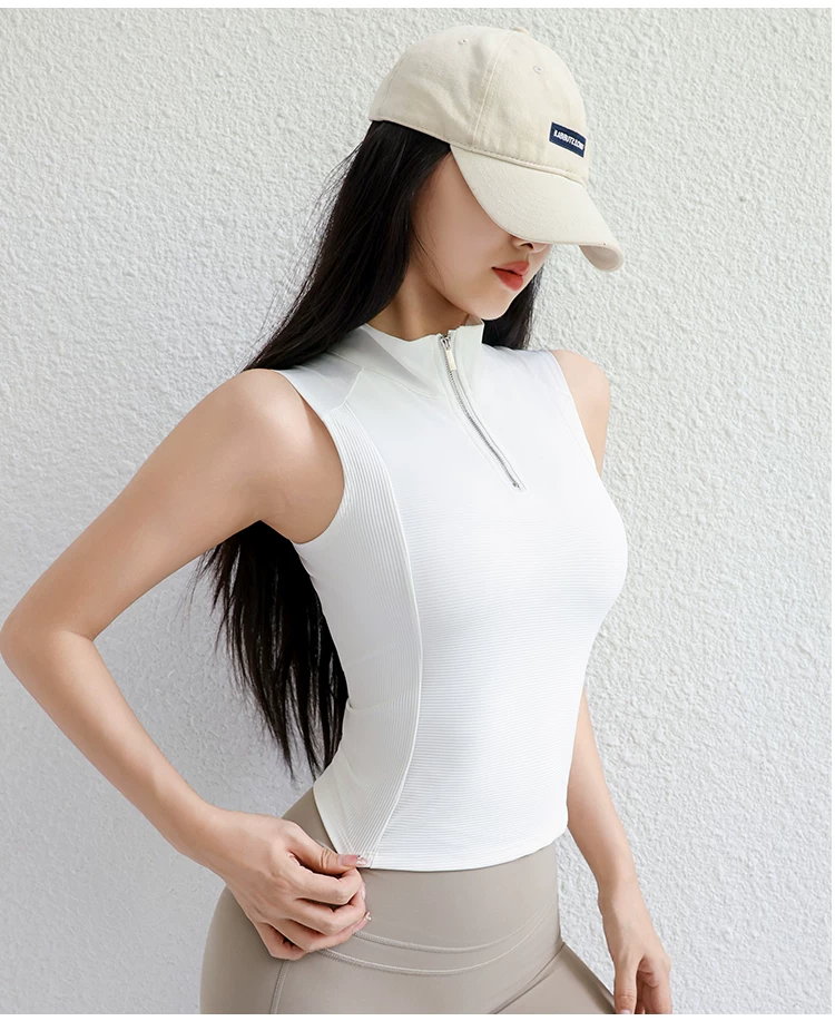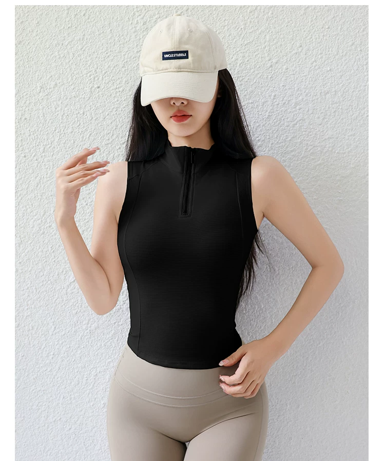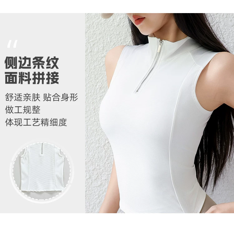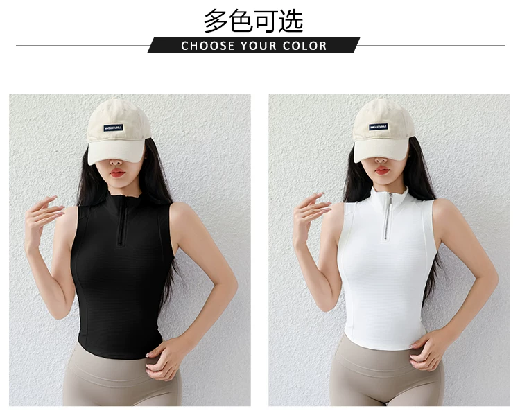 - Áo vest thể thao nữ không tay, khóa kéo nửa thân, thiết kế retro Mỹ, mùa hè 2026, áo tập gym, đồ tập yoga mới