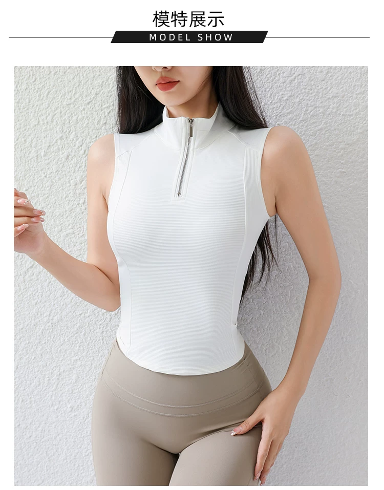 Áo vest thể thao nữ không tay, khóa kéo nửa thân, thiết kế retro Mỹ, mùa hè 2026, áo tập gym, đồ tập yoga mới