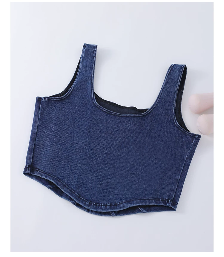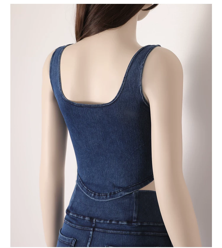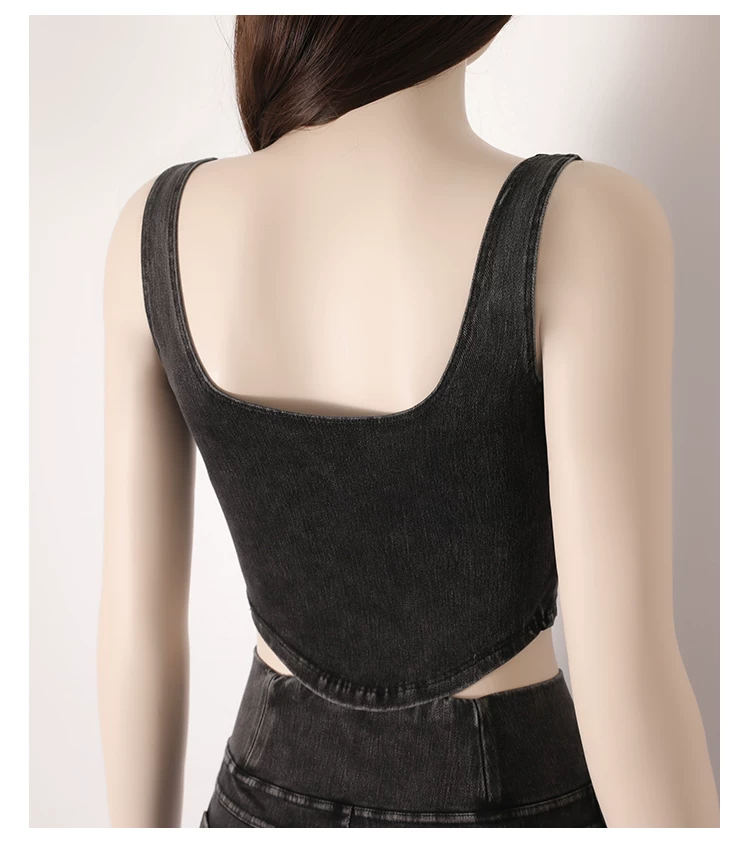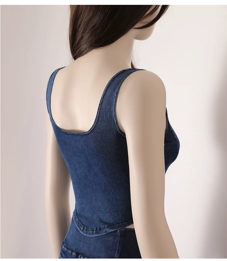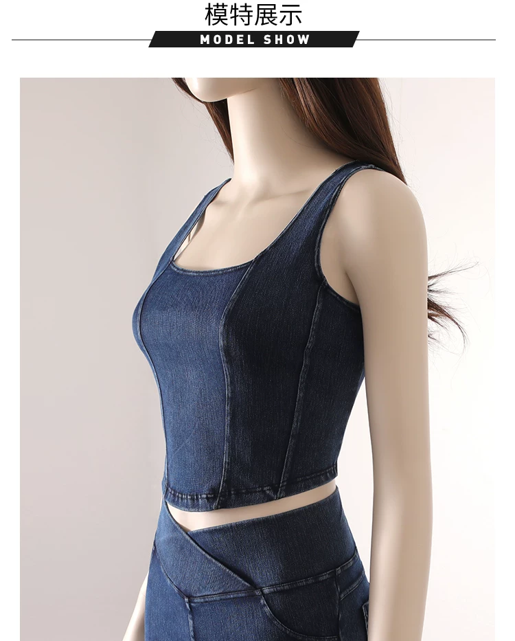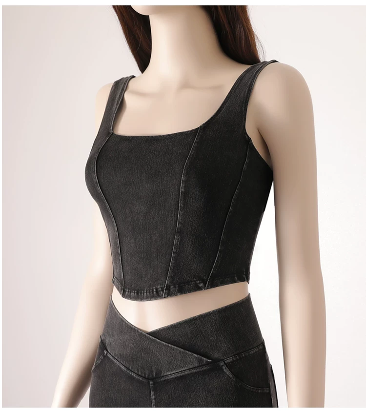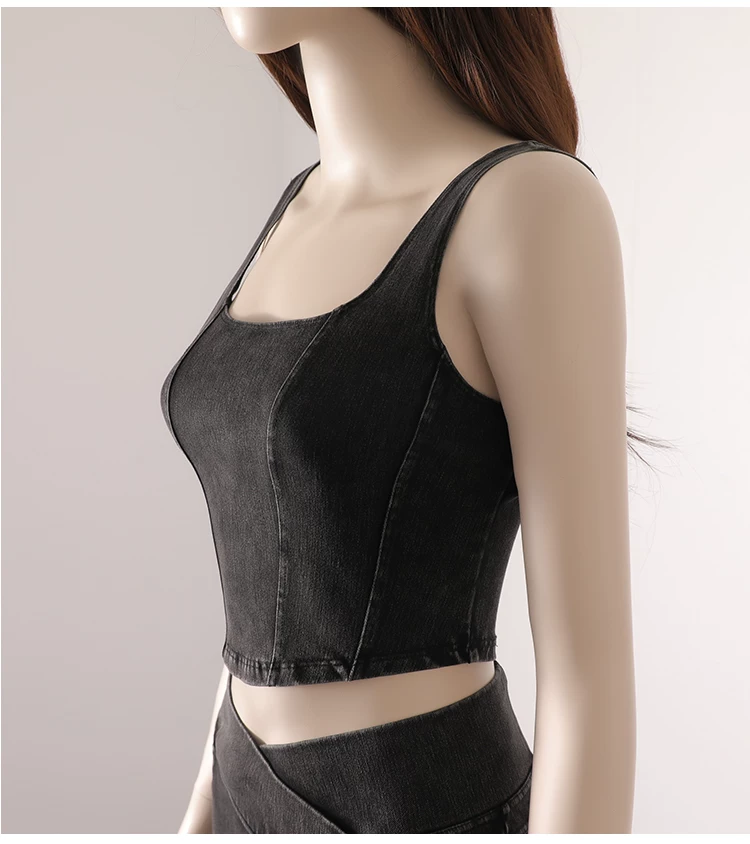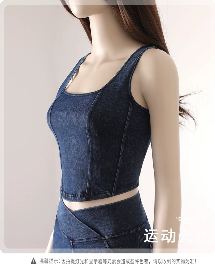 Áo vest thể thao yoga denim kiểu mới dành cho nữ, thiết kế lưng chữ U co giãn, tôn dáng và đẹp mắt, áo tập luyện không tay mặc ngoài.