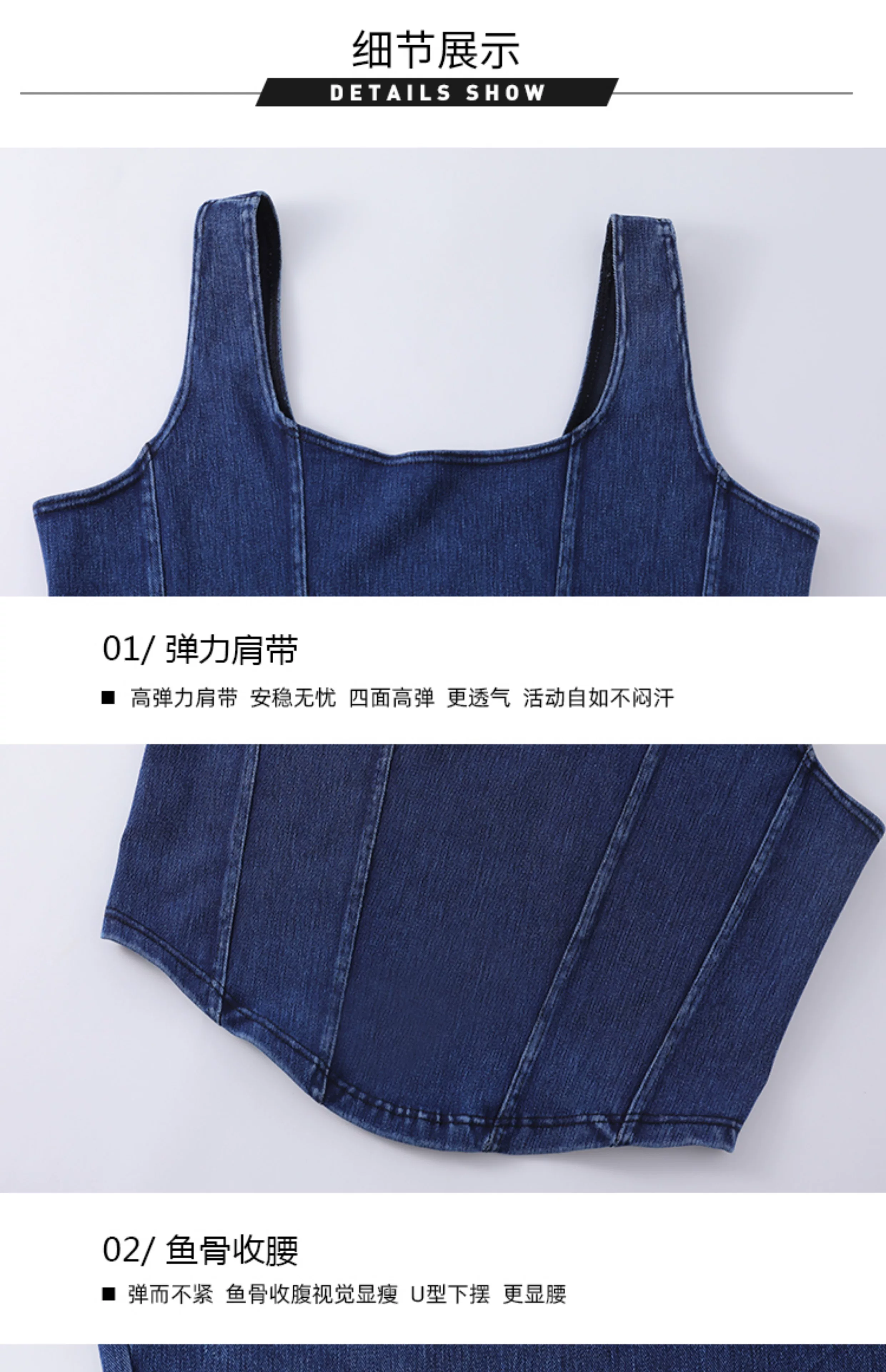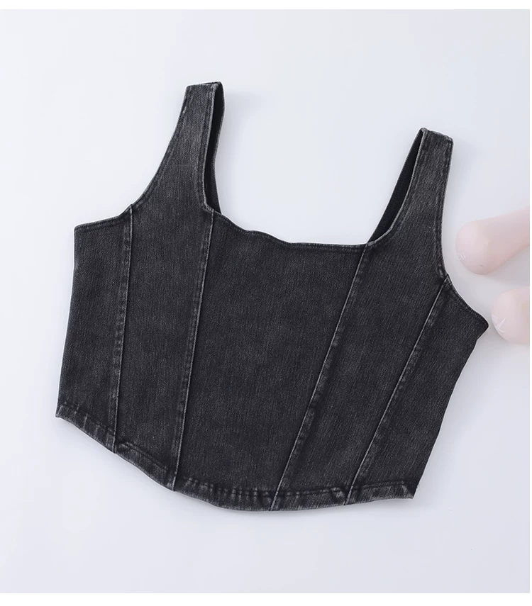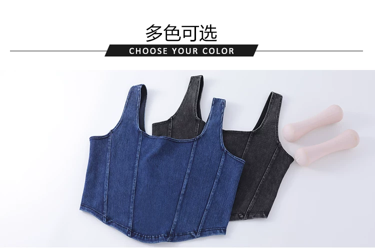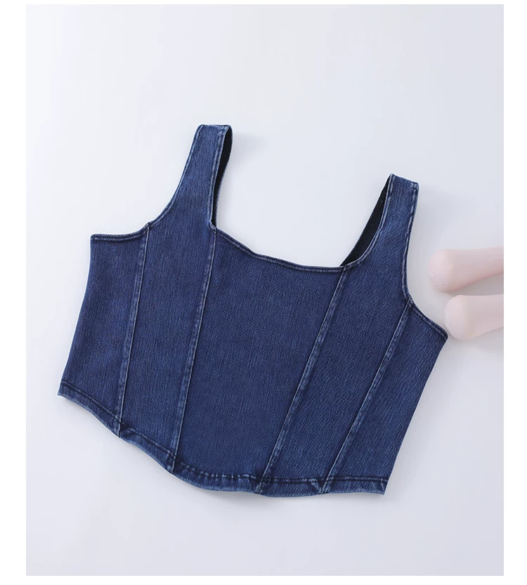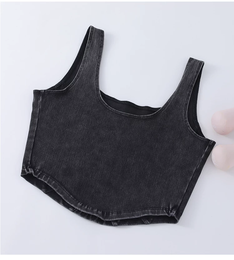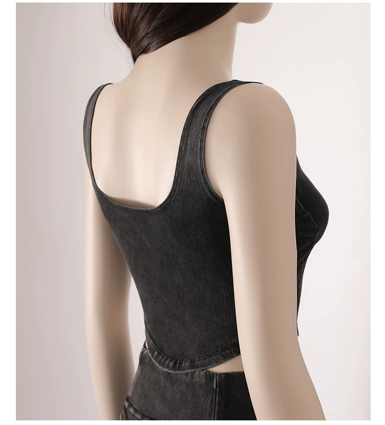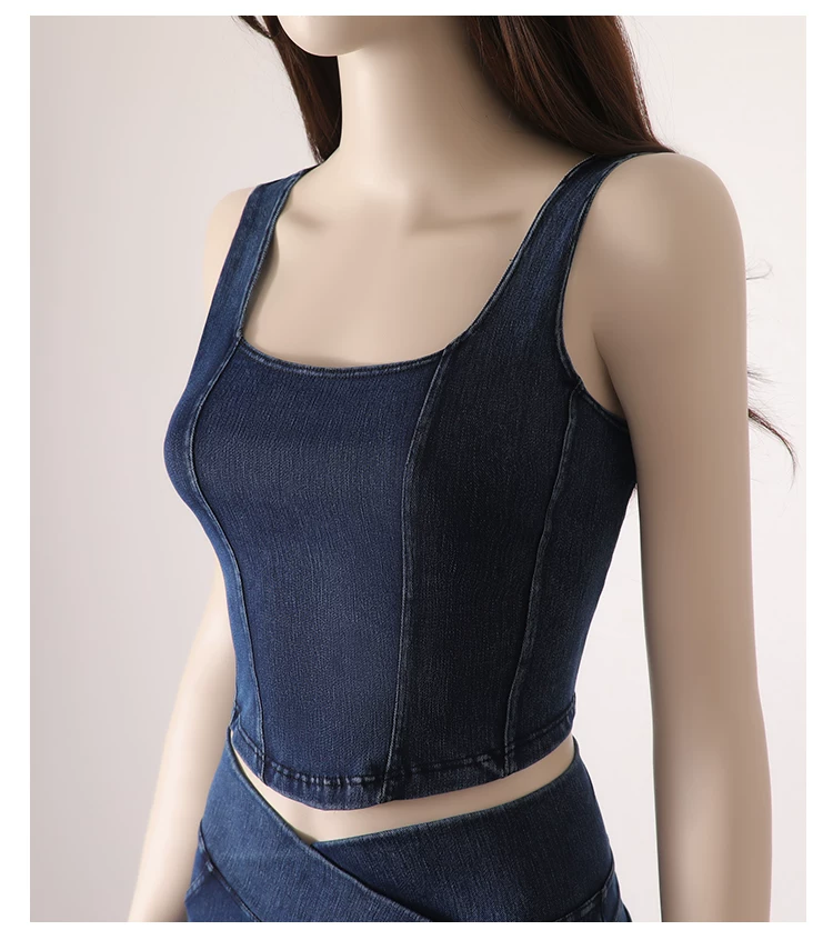 Áo vest thể thao yoga denim kiểu mới dành cho nữ, thiết kế lưng chữ U co giãn, tôn dáng và đẹp mắt, áo tập luyện không tay mặc ngoài.
