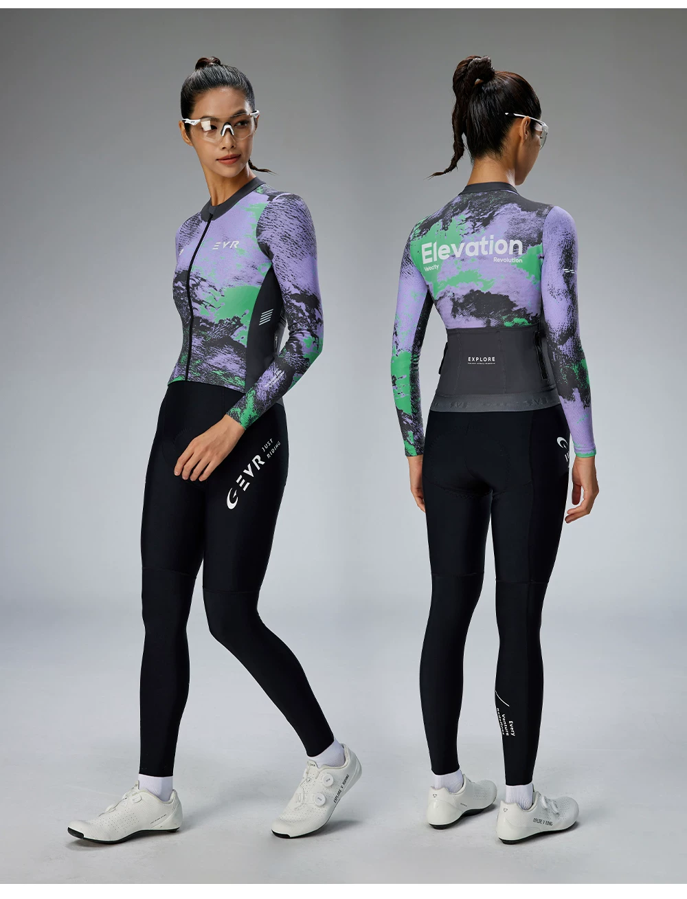 Áo xe đạp đường trường EVR dành cho nữ 2025, áo thể thao tay dài mới cho mùa thu đông, có lớp lót lông cừu, chống gió