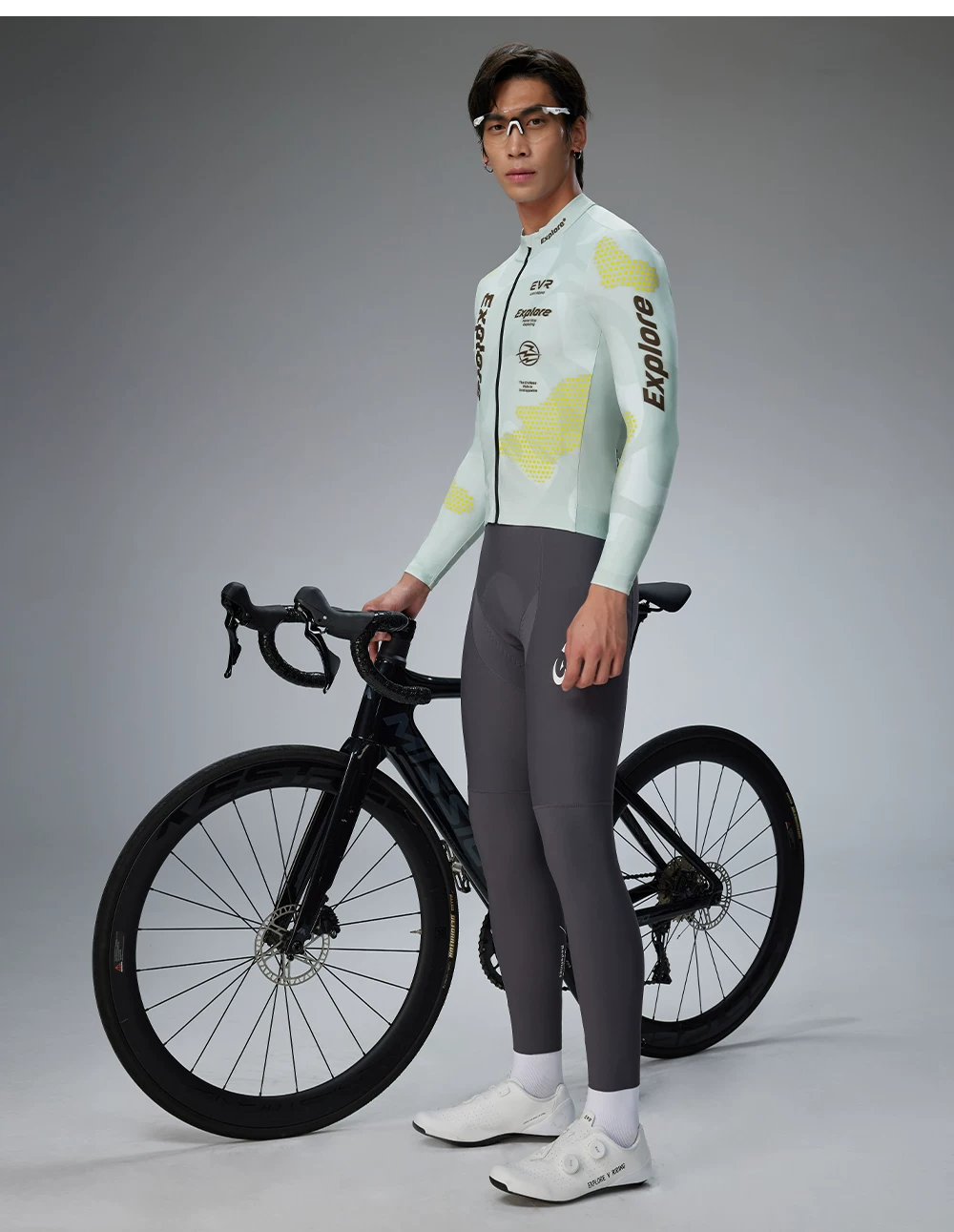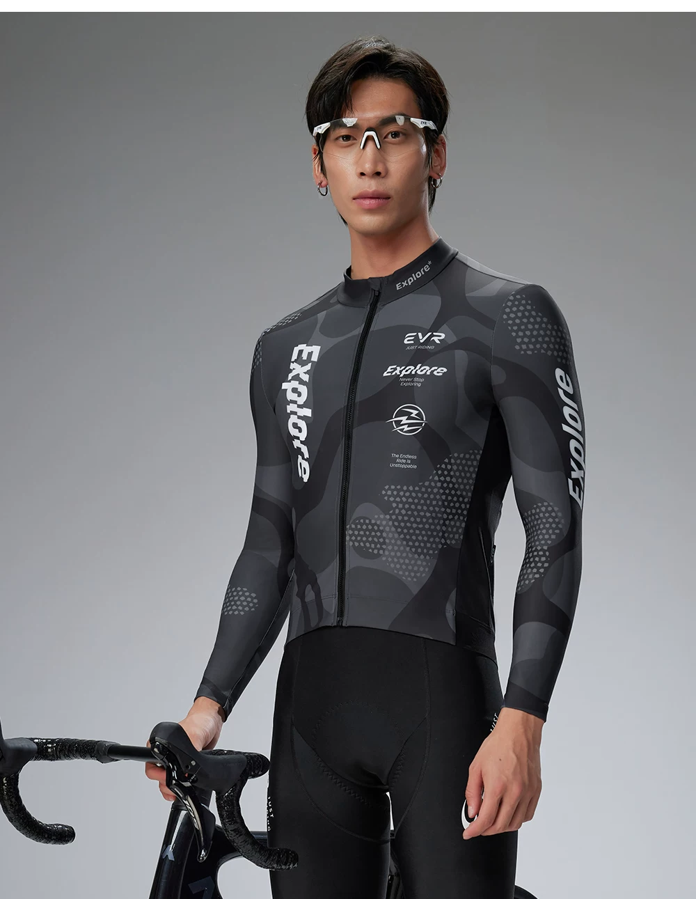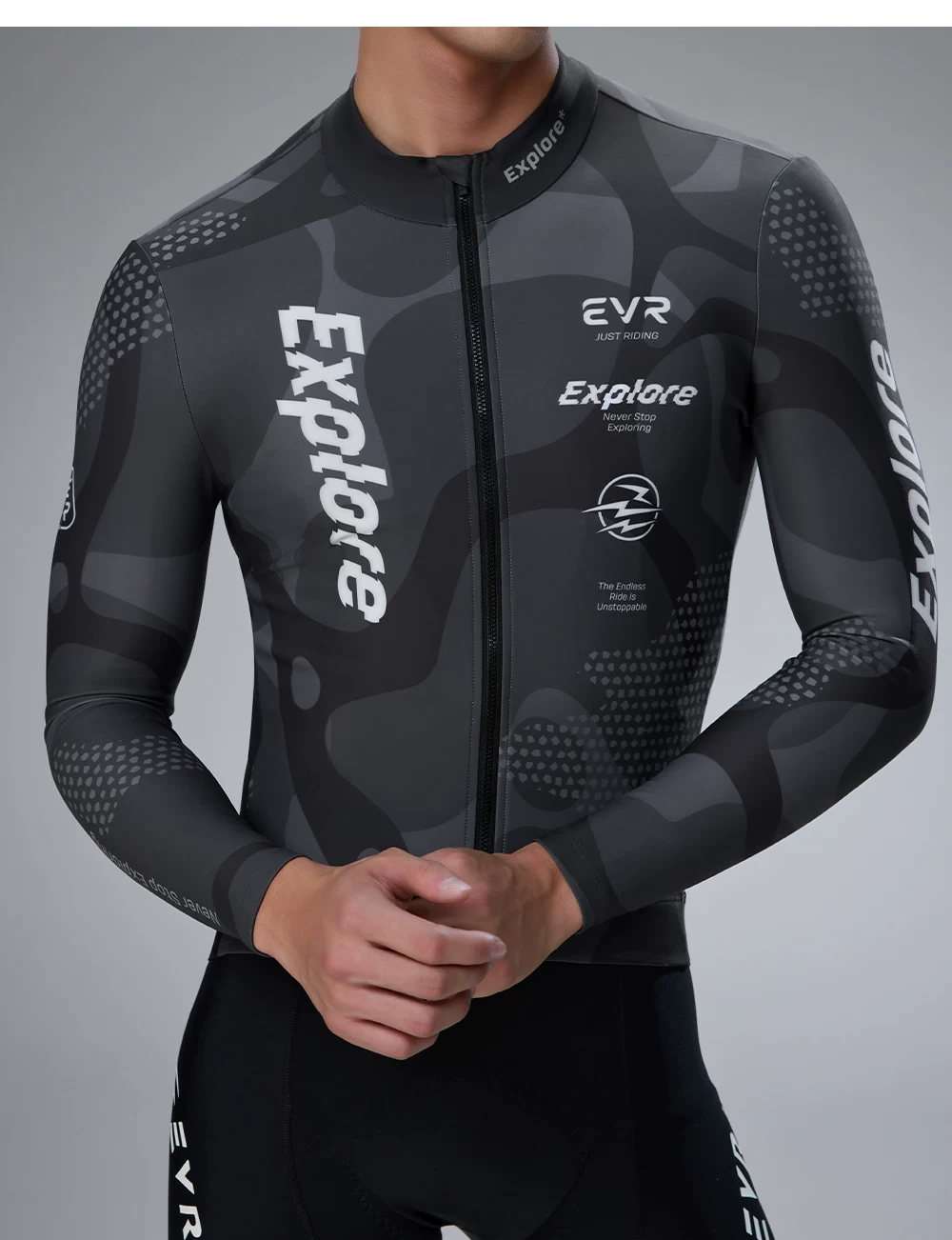 Áo xe đạp nam EVR mùa thu đông, chất liệu lông cừu giữ ấm, áo xe đạp đường trường dài tay, kiểu dáng mới 2025