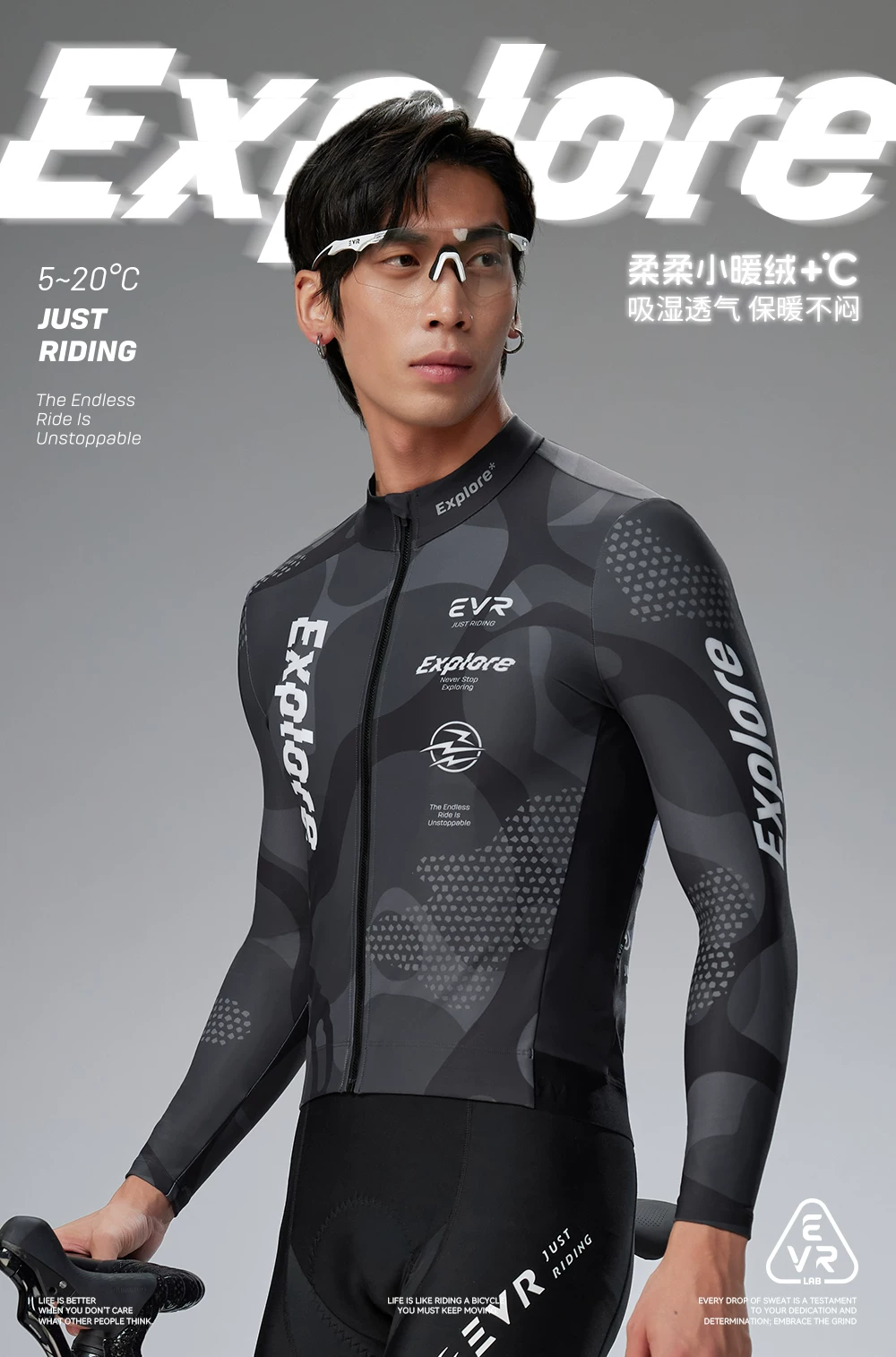 - Áo xe đạp nam EVR mùa thu đông, chất liệu lông cừu giữ ấm, áo xe đạp đường trường dài tay, kiểu dáng mới 2025