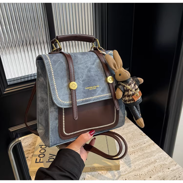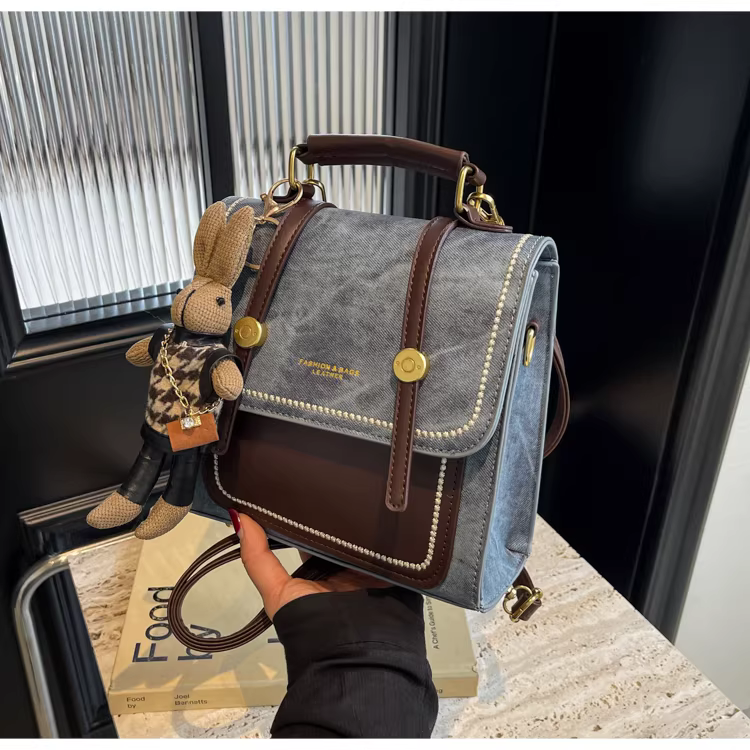 - Ba lô denim nhỏ cao cấp ba trong một dành cho nữ thời trang mới 2025, đeo chéo, đi ngắn ngày