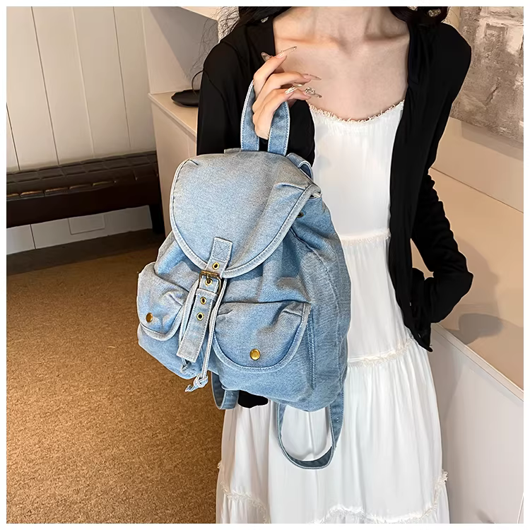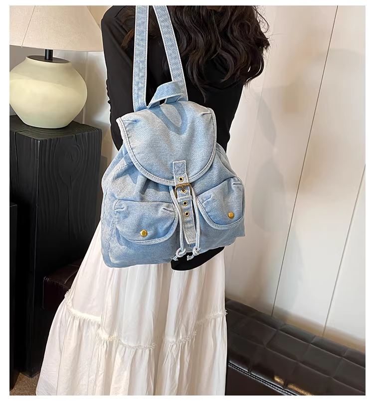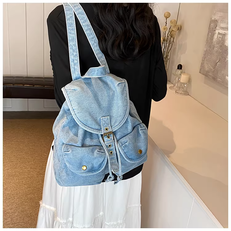 - Ba lô denim nữ, dung tích lớn, mẫu mới 2025, túi đeo vai, ba lô đa năng đi học, đi phượt và du lịch