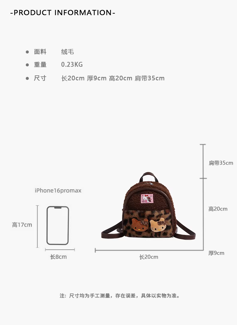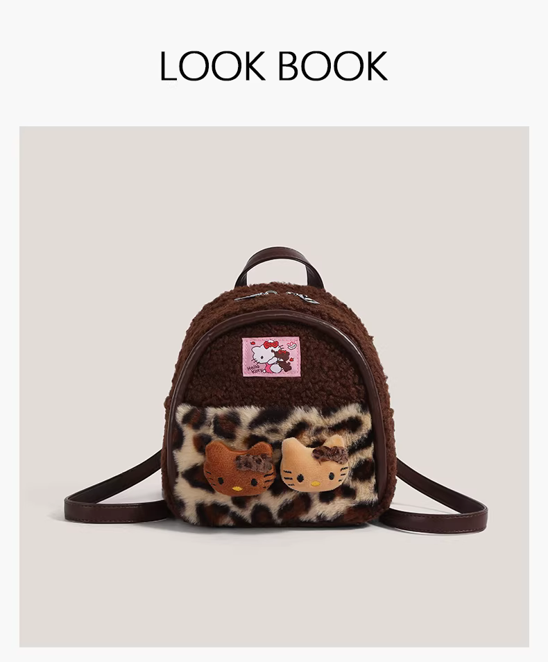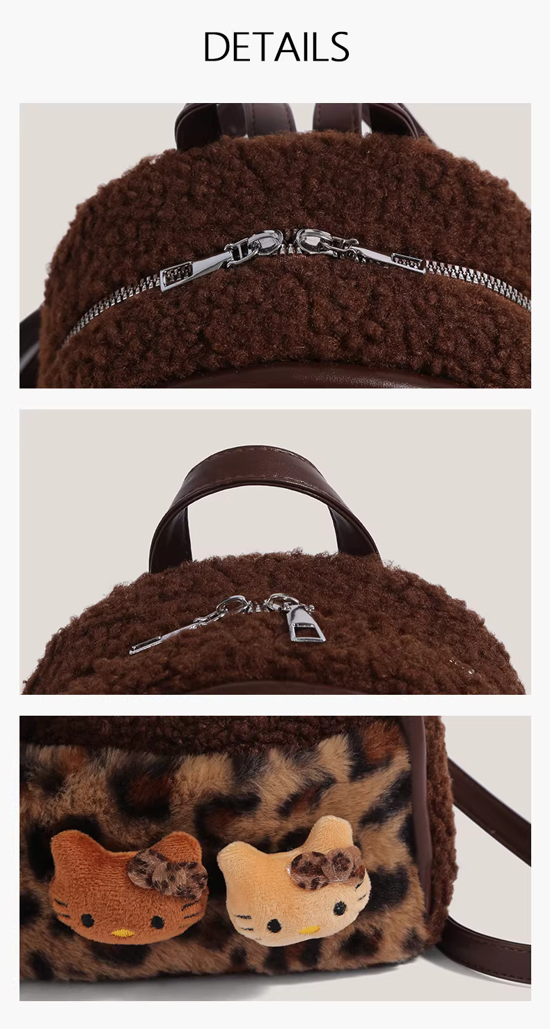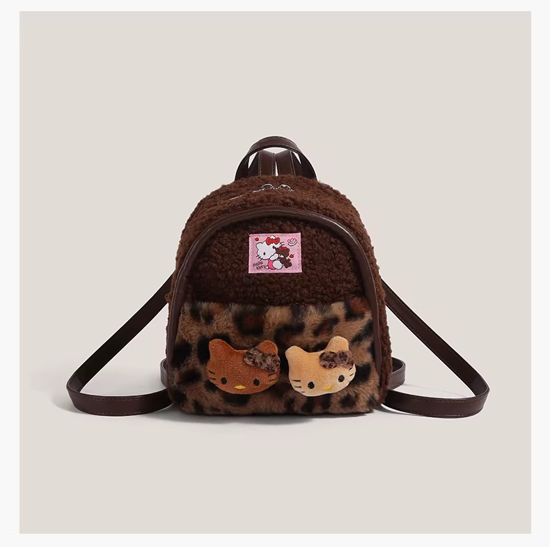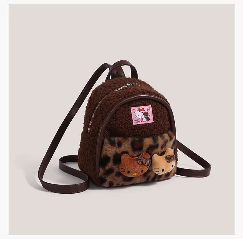 Ba lô in hình báo Hello Kitty dễ thương dành cho nữ, mẫu mới thu đông 2025, ba lô lông thú Hello Kitty hoạt hình đa năng