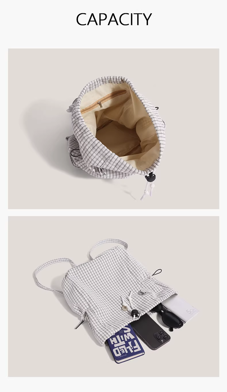 - Ba lô kẻ caro thời trang dành cho nữ 2025, phong cách Hàn Quốc mới, balo đeo vai cá tính, túi đeo vai học sinh