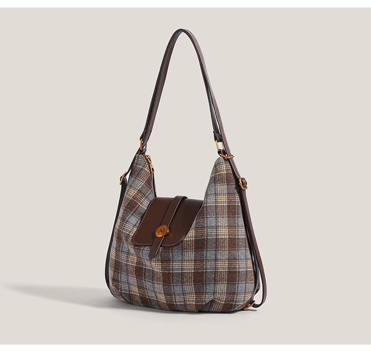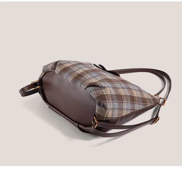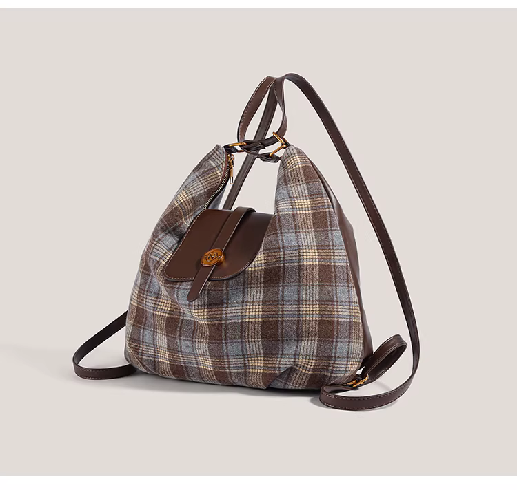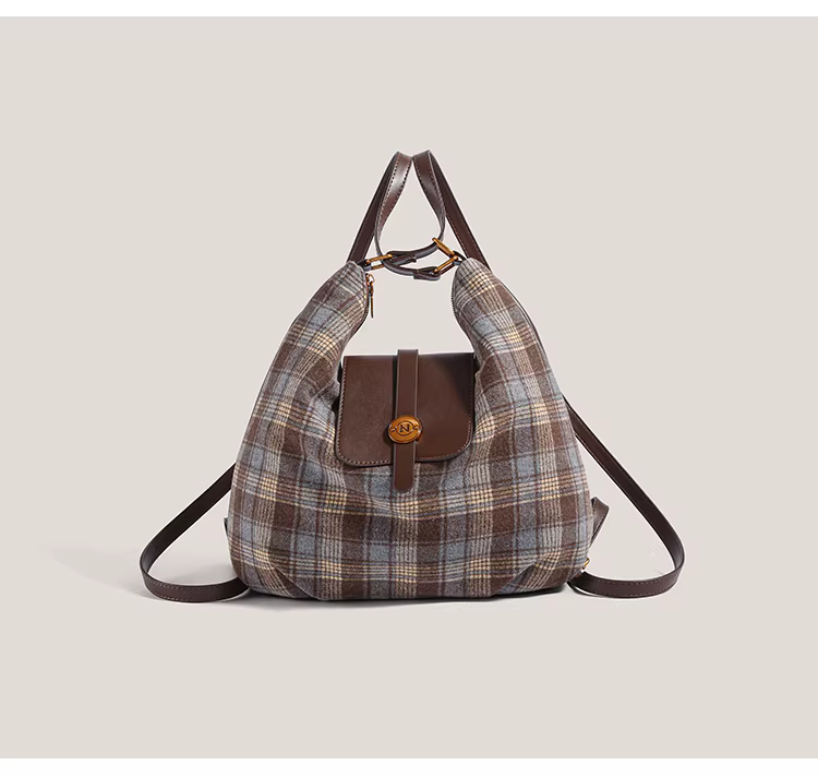 - Ba lô len kẻ caro nữ thời trang thu đông 2025, túi tote phong cách học sinh, đa năng, dung tích lớn