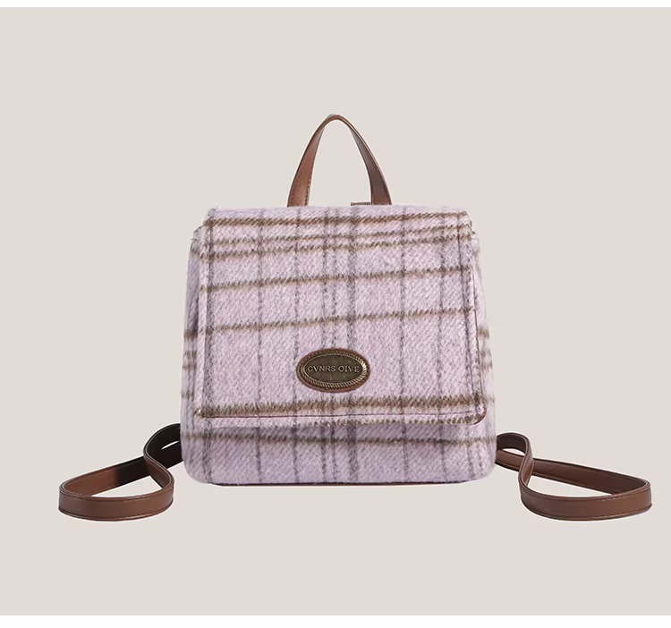 - Ba lô phong cách học sinh dành cho nữ 2025, túi xách len kẻ caro cao cấp, đa năng, túi đeo vai đi làm