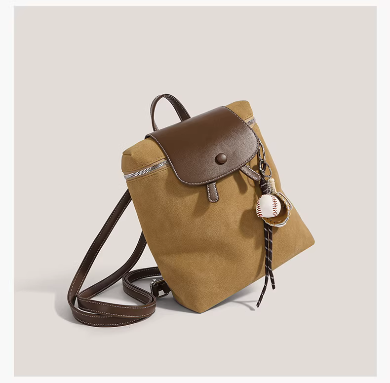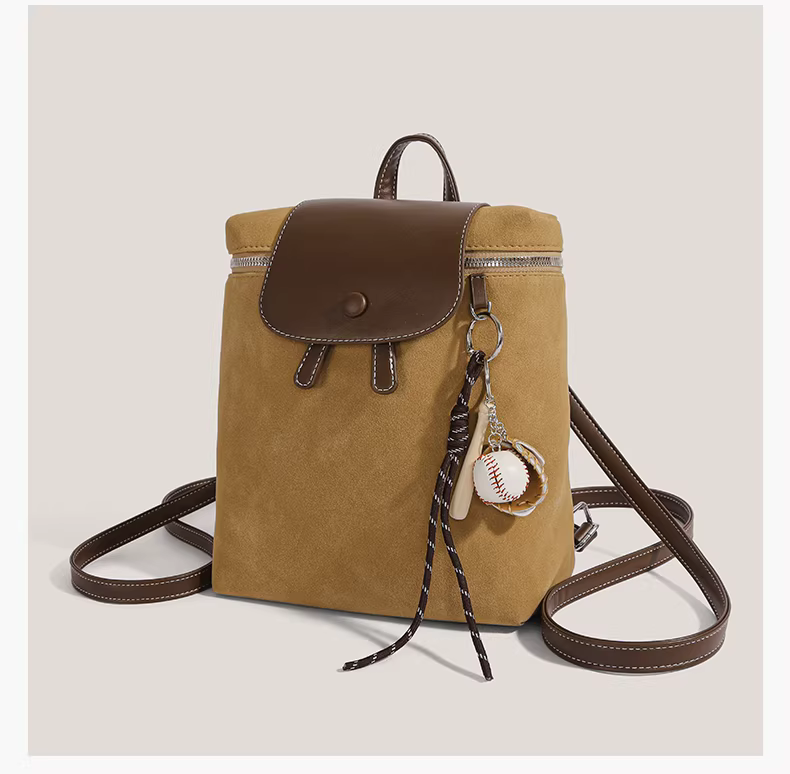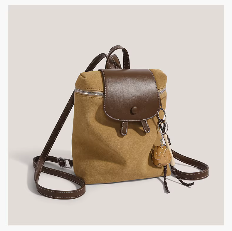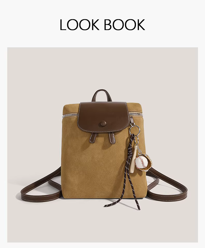 Ba lô retro nữ 2025 thời trang mới phong cách preppy chất liệu da lộn, dung tích lớn, túi du lịch