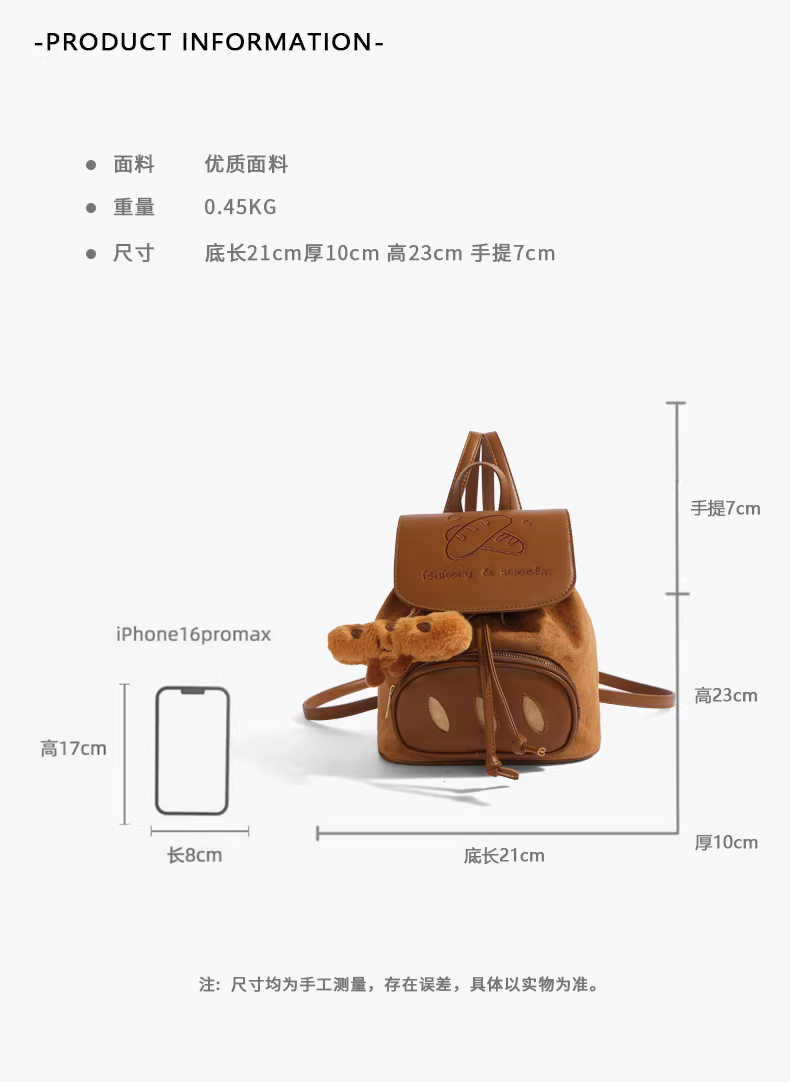 - Ba lô thêu hình bánh mì hoạt hình dễ thương dành cho nữ 2025, ba lô cao cấp độc đáo chất liệu da lộn, cặp sách học sinh