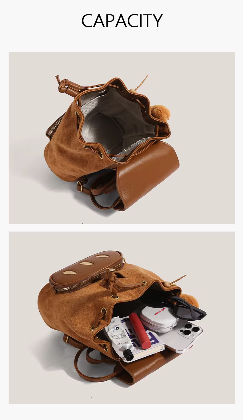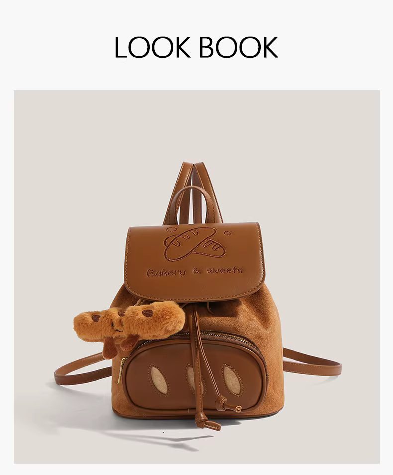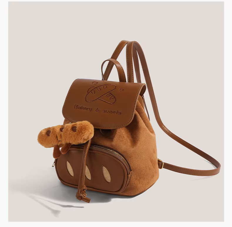 Ba lô thêu hình bánh mì hoạt hình dễ thương dành cho nữ 2025, ba lô cao cấp độc đáo chất liệu da lộn, cặp sách học sinh