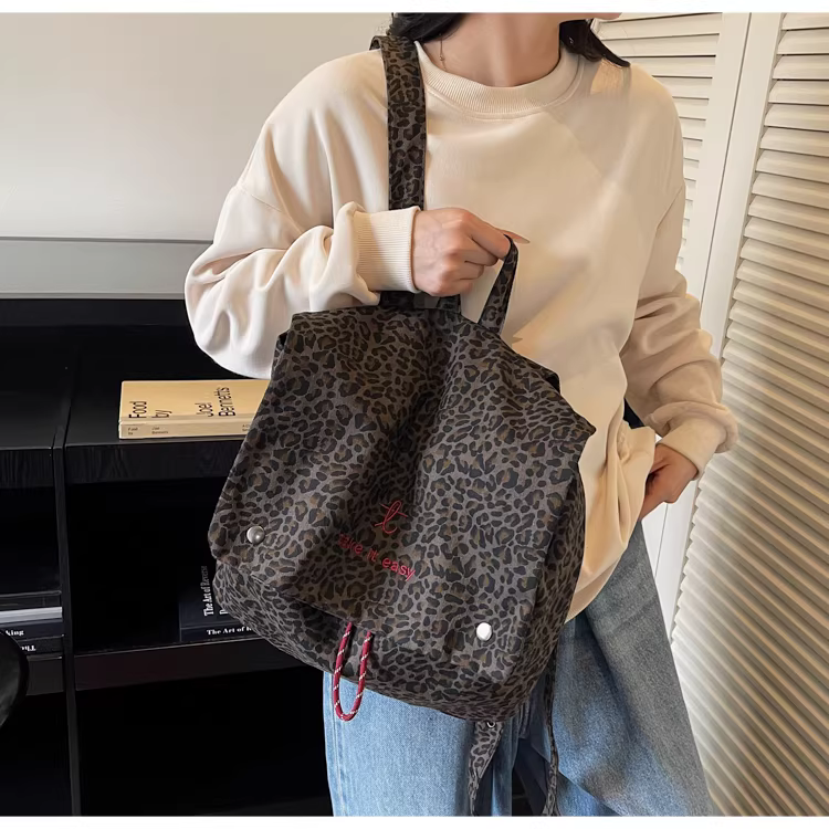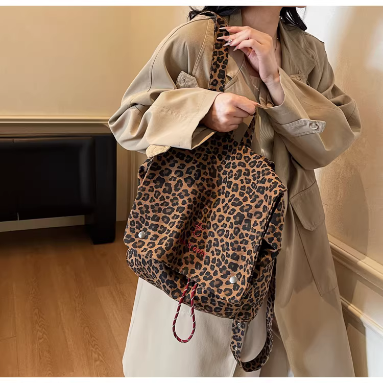 - Ba lô vải canvas họa tiết da báo dành cho nữ, túi đi học thông thường dành cho học sinh, túi đi bộ đường dài ngoài trời, ba lô du lịch nhẹ