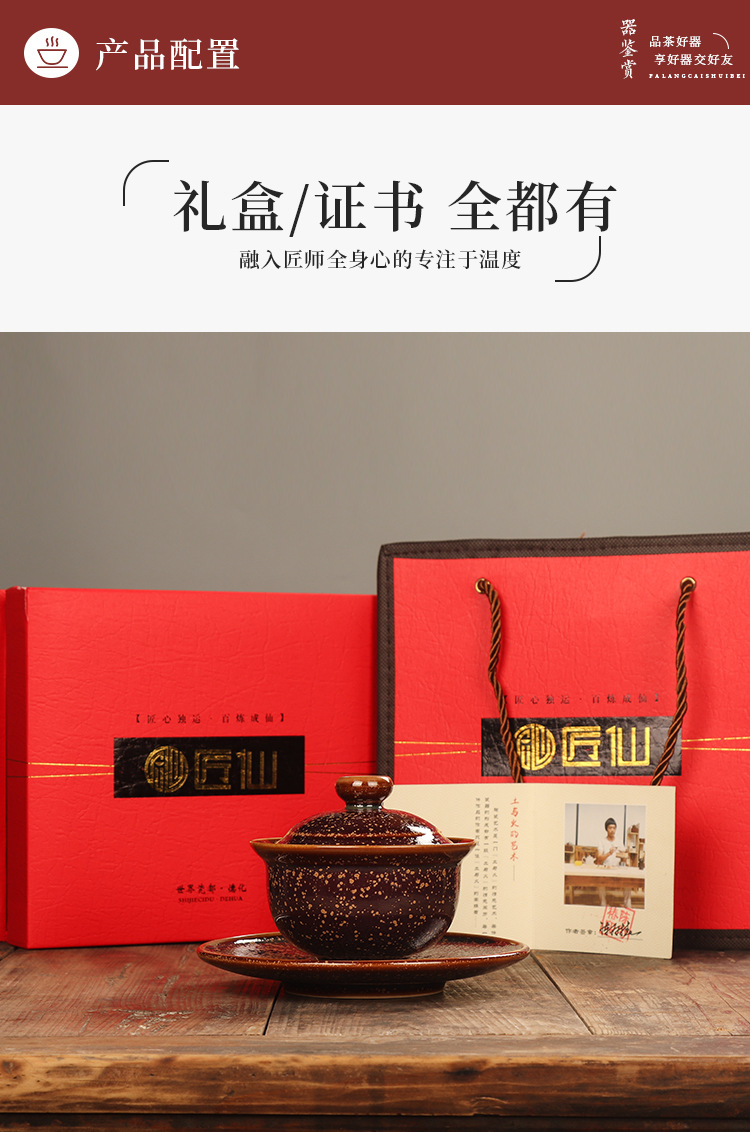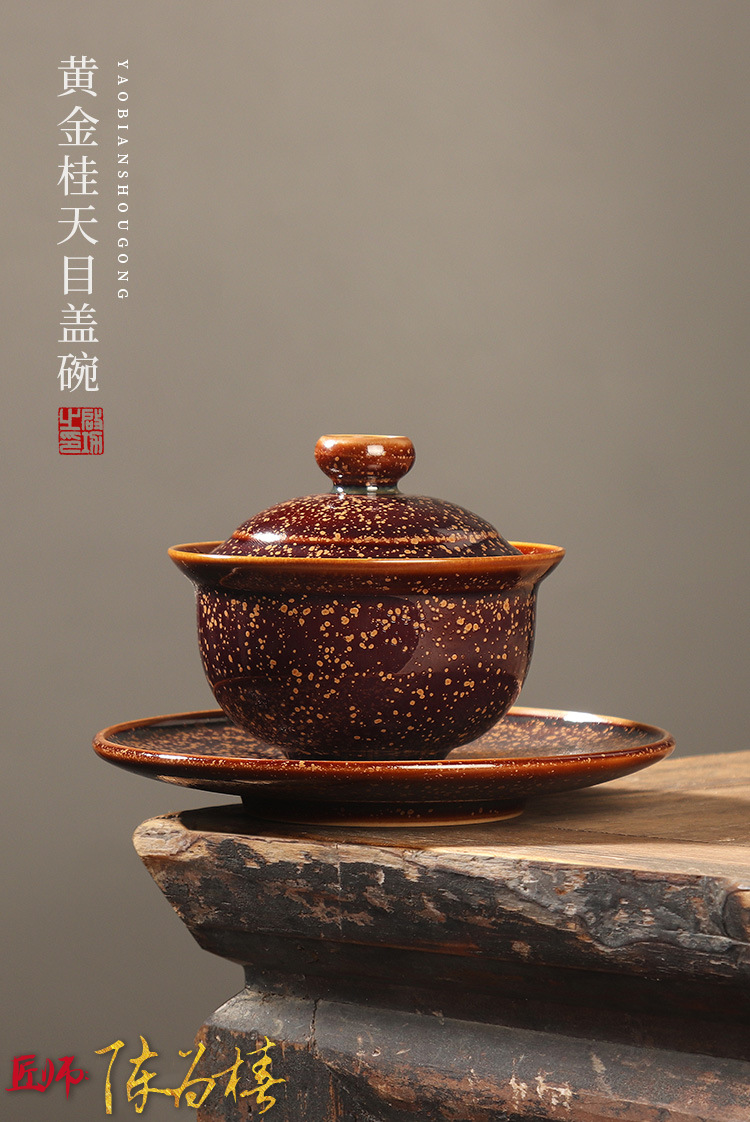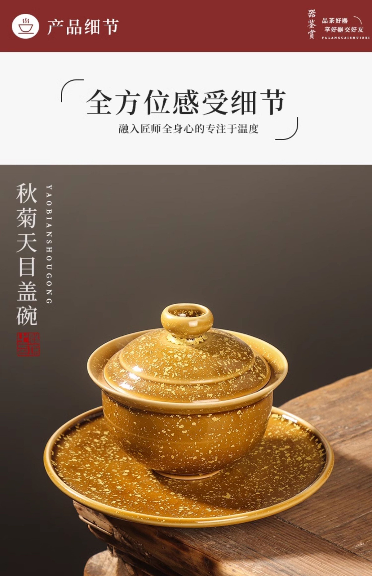 - Bậc thầy thợ thủ công Chen Weichun Golden Gui Sancai Bát trà Cốc gốm sứ Bộ trà Kung Fu thủ công