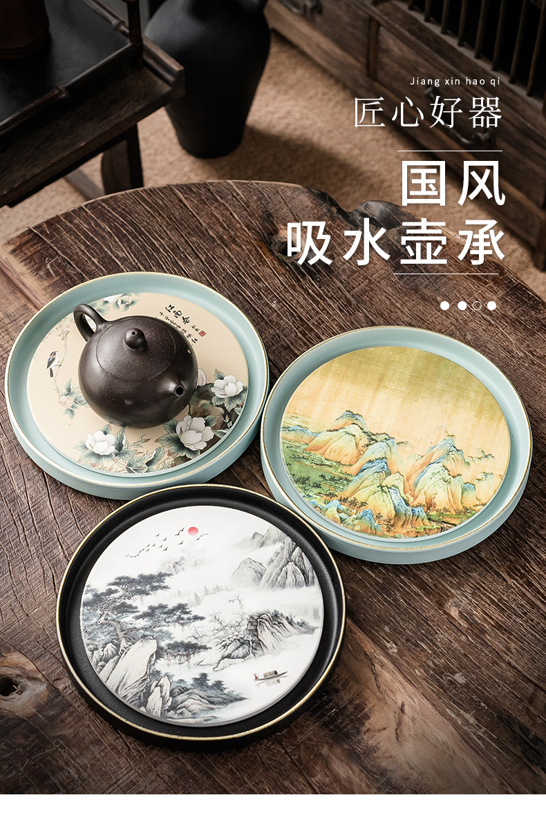 Bán buôn bình thấm nước gốm sứ khay đựng bọt khô Khay đựng ấm trà gốm sứ hình tròn khay đựng nước bình đựng nước bàn ủ khô gia dụng loại nhỏ