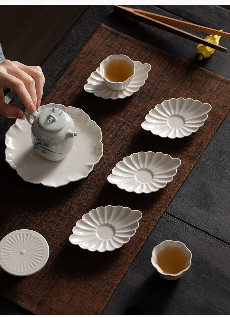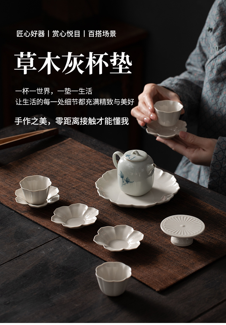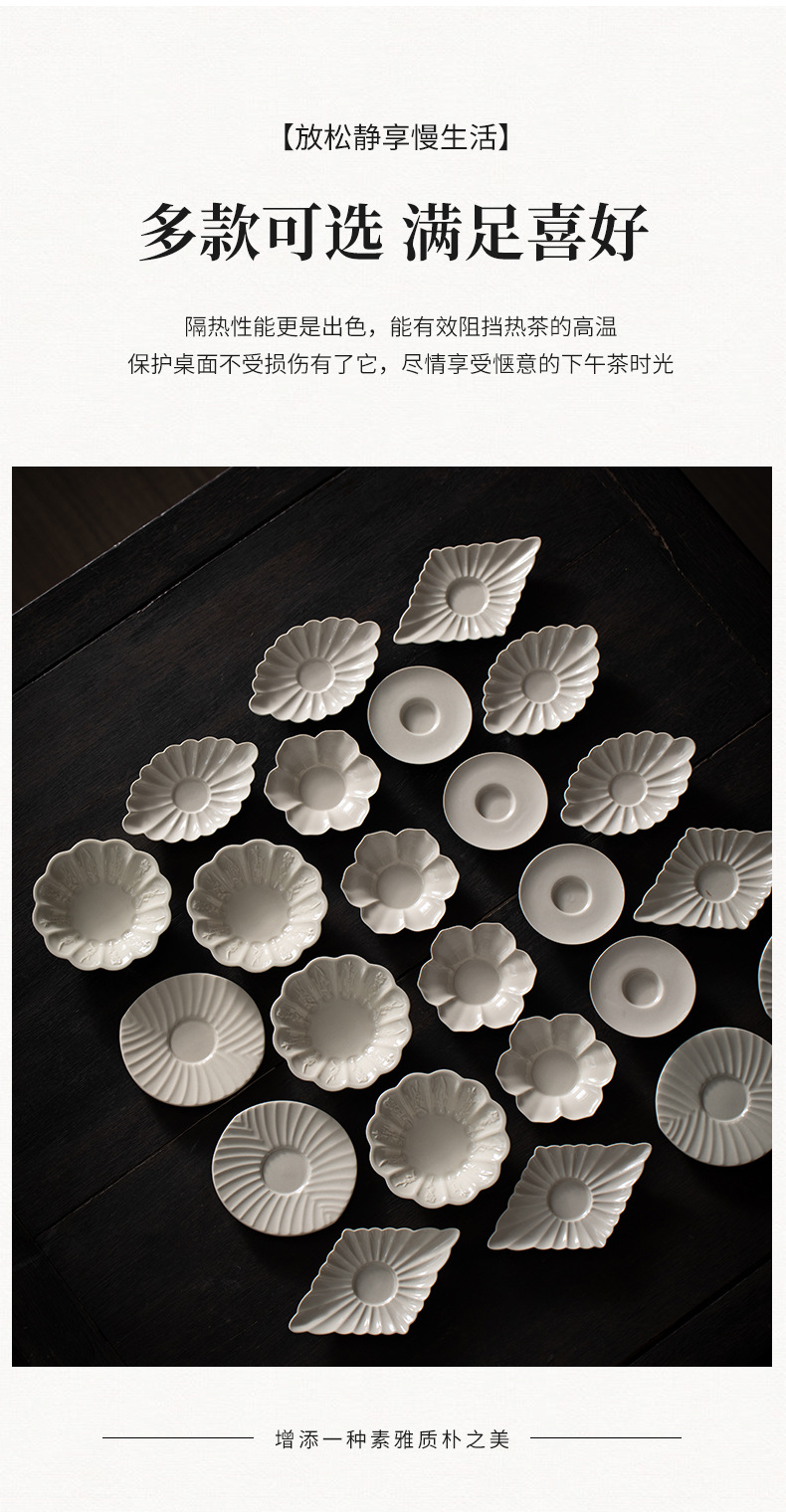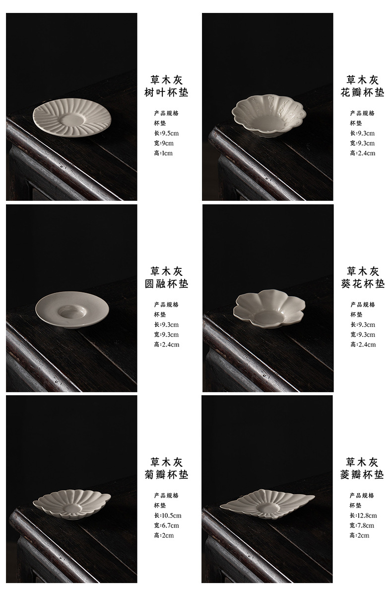 - Bán buôn đế cốc màu xám thực vật đế cốc trà hình sáng tạo chống bỏng cách nhiệt phụ kiện bộ trà gốm sứ cổ điển kiểu Trung Quốc