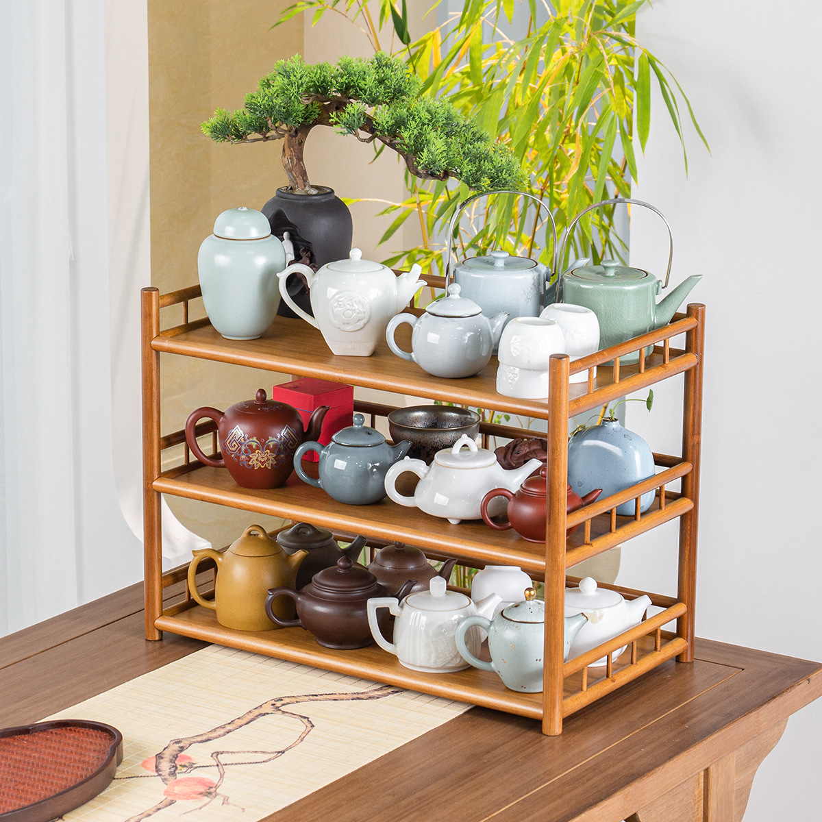 - Bán buôn giá đỡ trà ba tầng bằng tre có hàng rào ấm trà để bàn ấm trà tử sa Giá đựng cốc trà giá đựng đồ Bộ trà