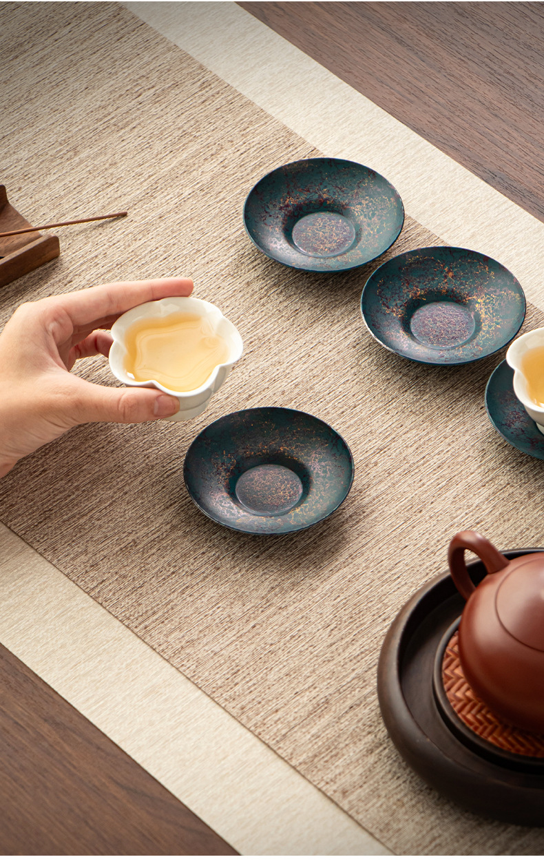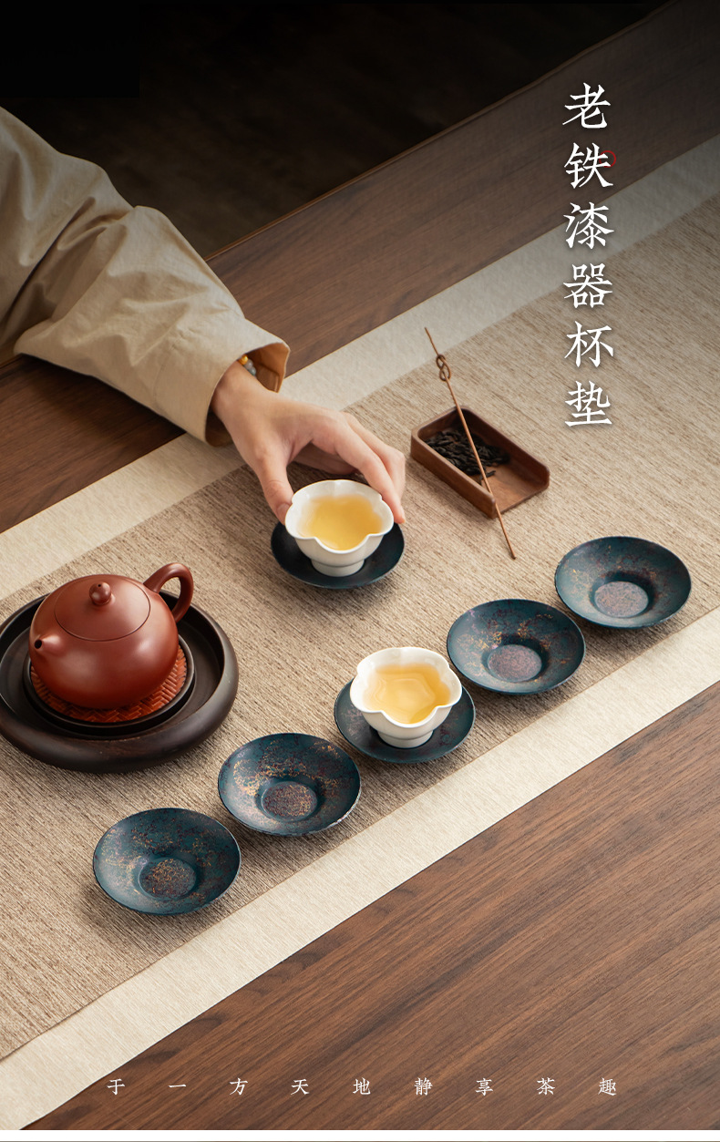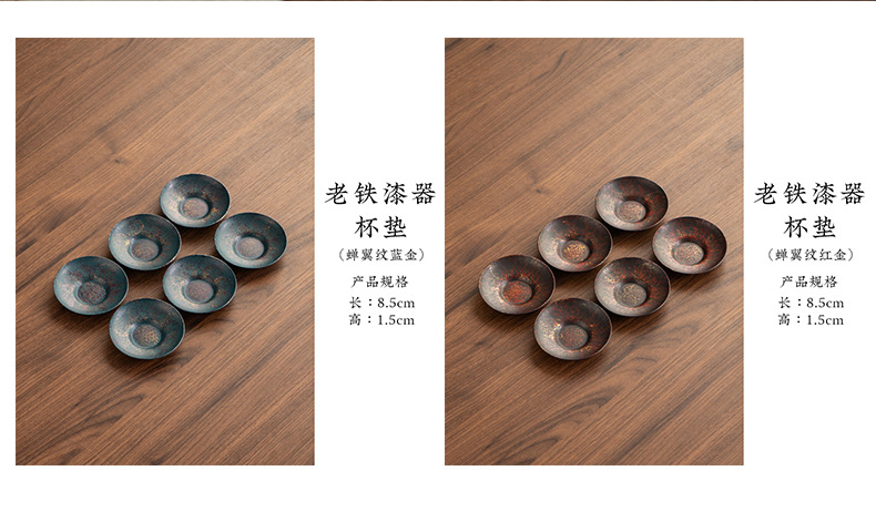 - Bán buôn lót ly thủ công cổ điển lót ly trà sơn mài sắt cũ lót cách nhiệt cốc tròn đựng cốc phụ kiện bộ trà Kung Fu gia dụng