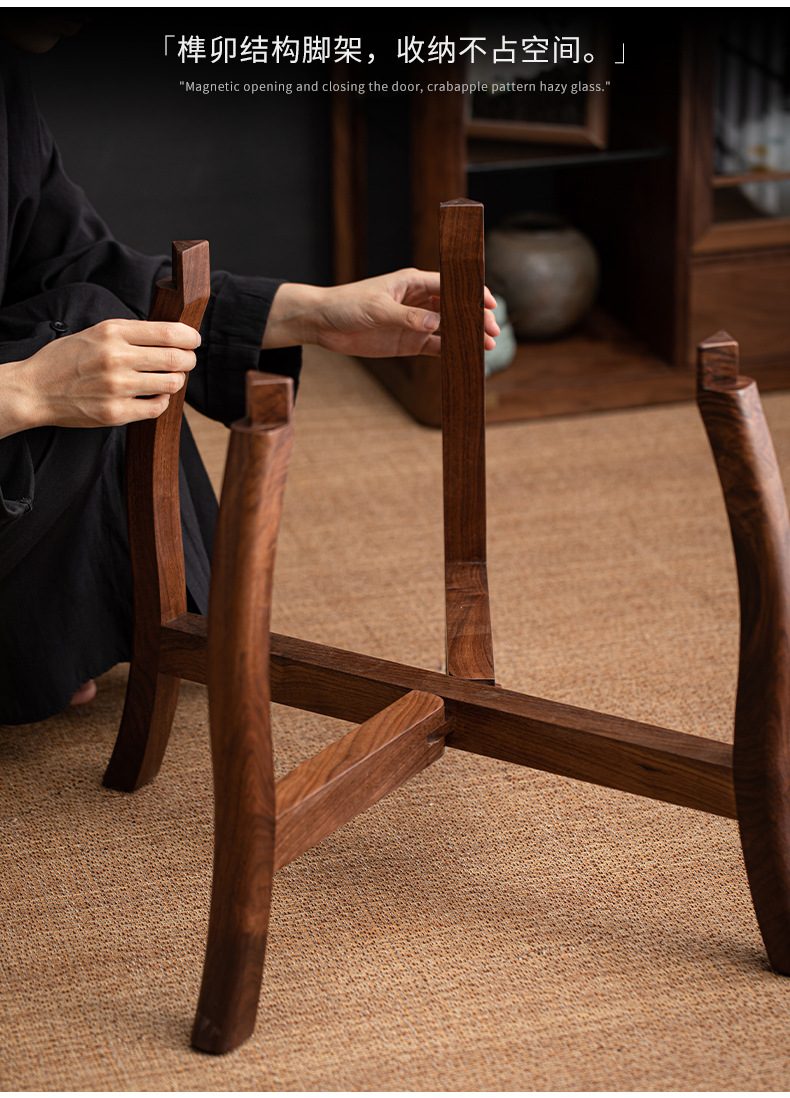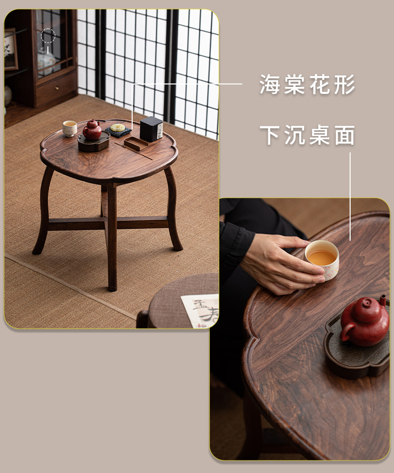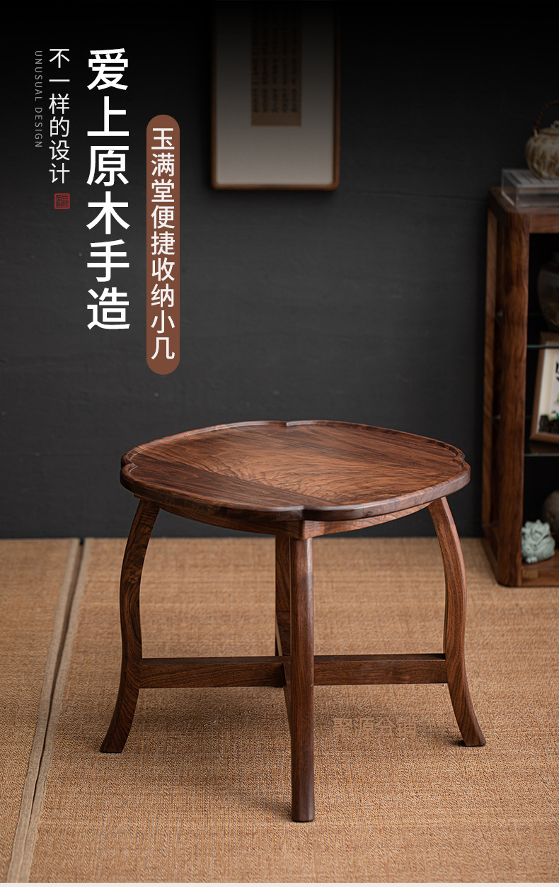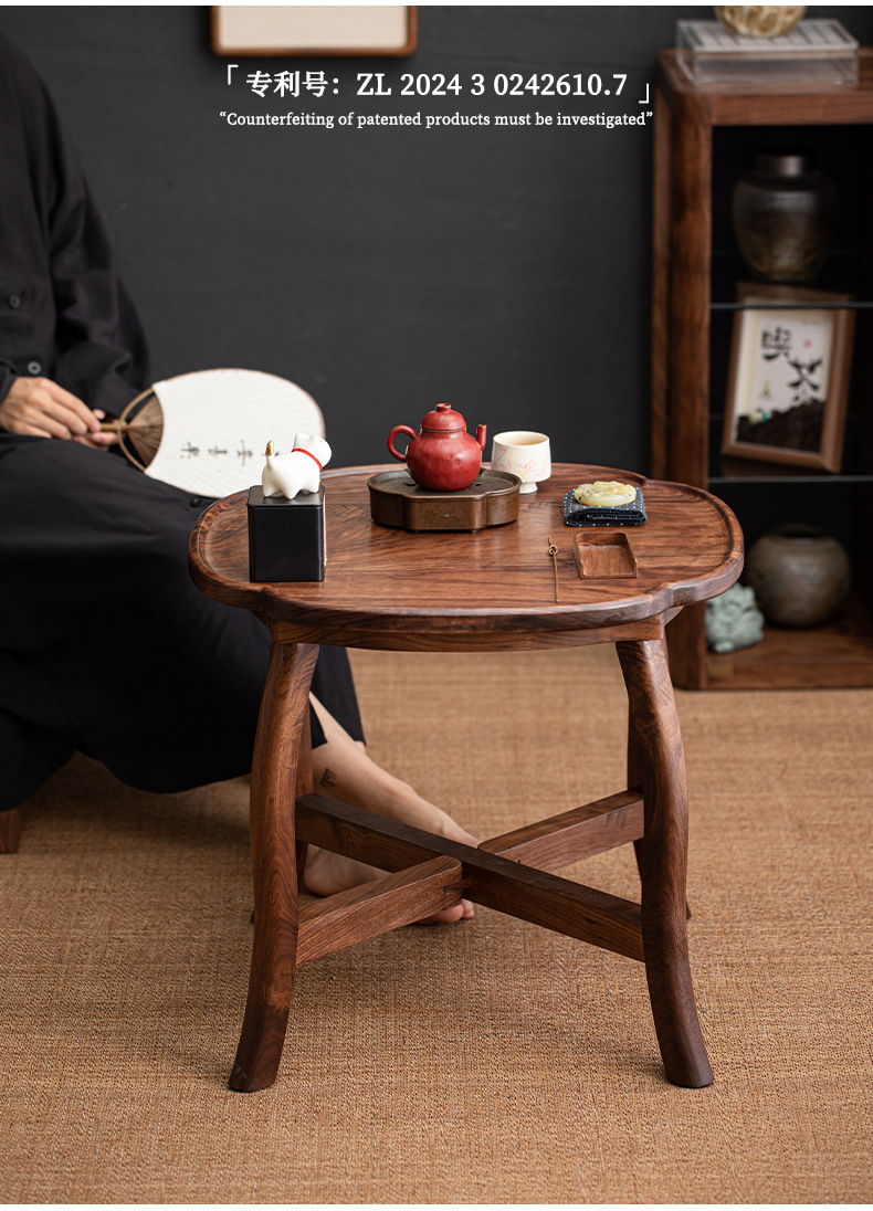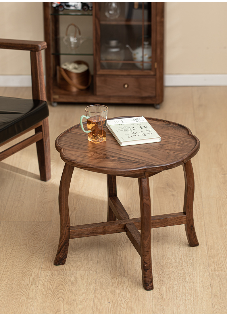 - Bàn cà phê gỗ nguyên khối Bắc Âu bàn ban công gia dụng bàn ghế sofa bàn bên cạnh hình tròn nhỏ màu đen Gỗ Óc Chó