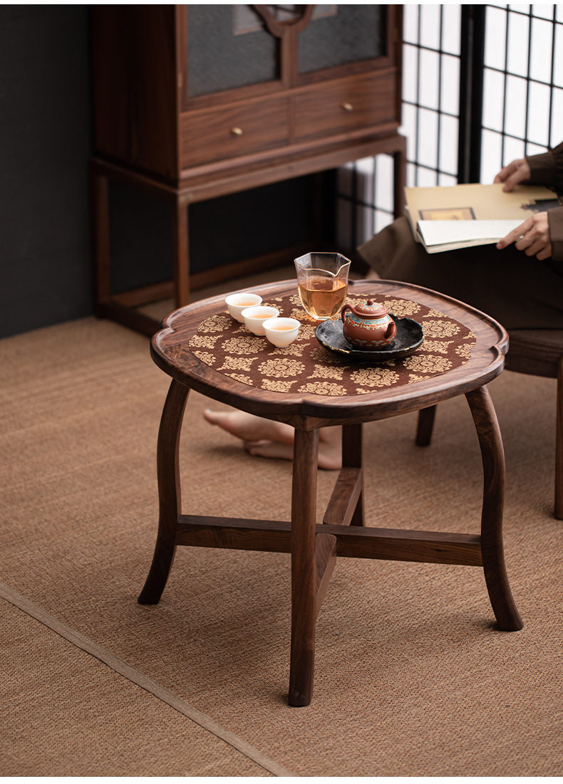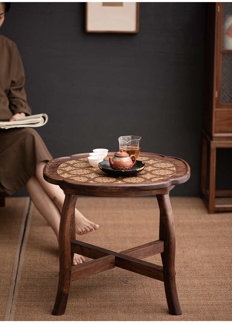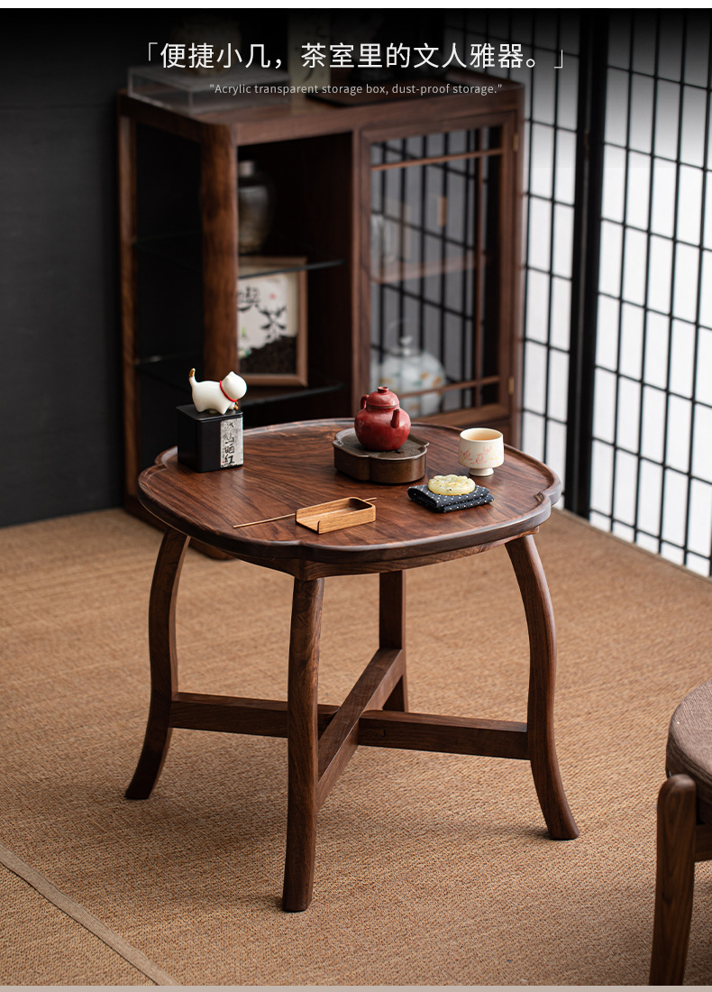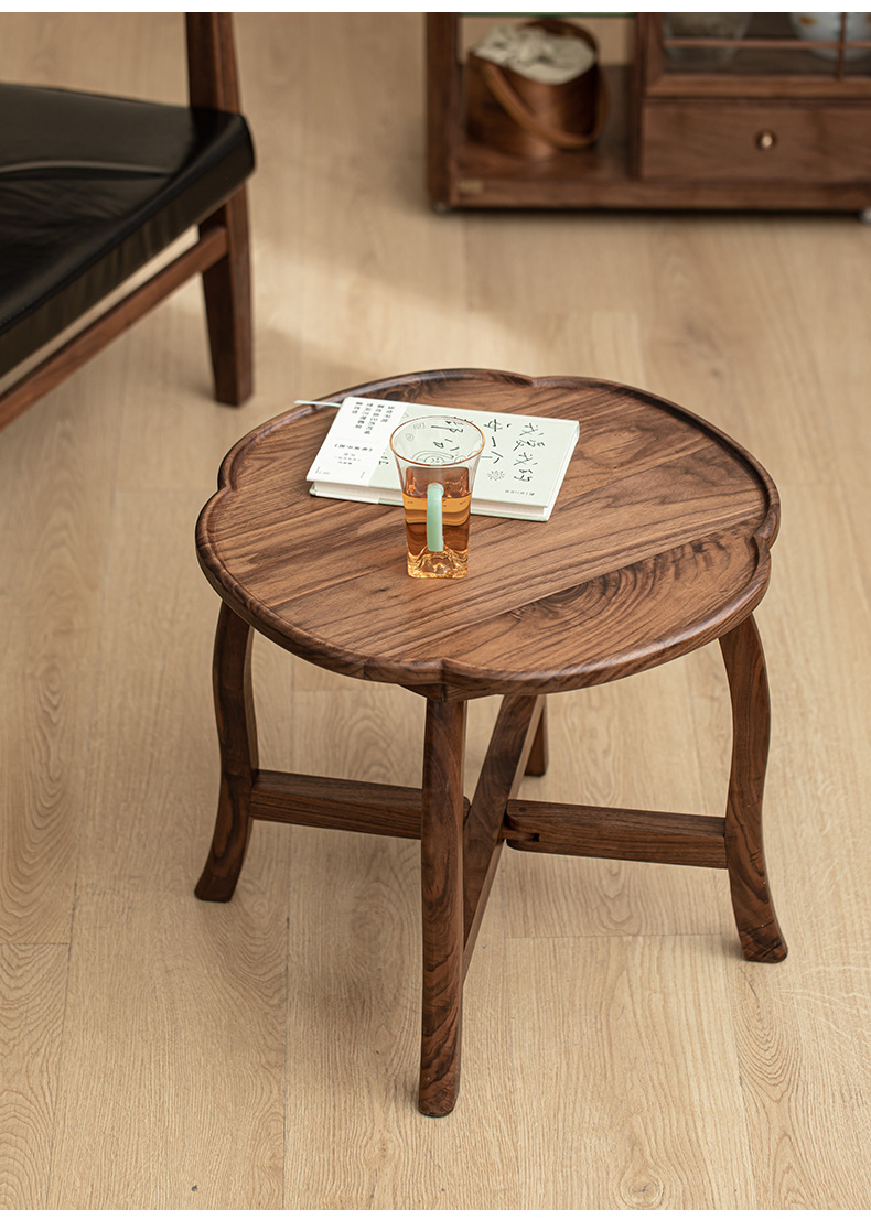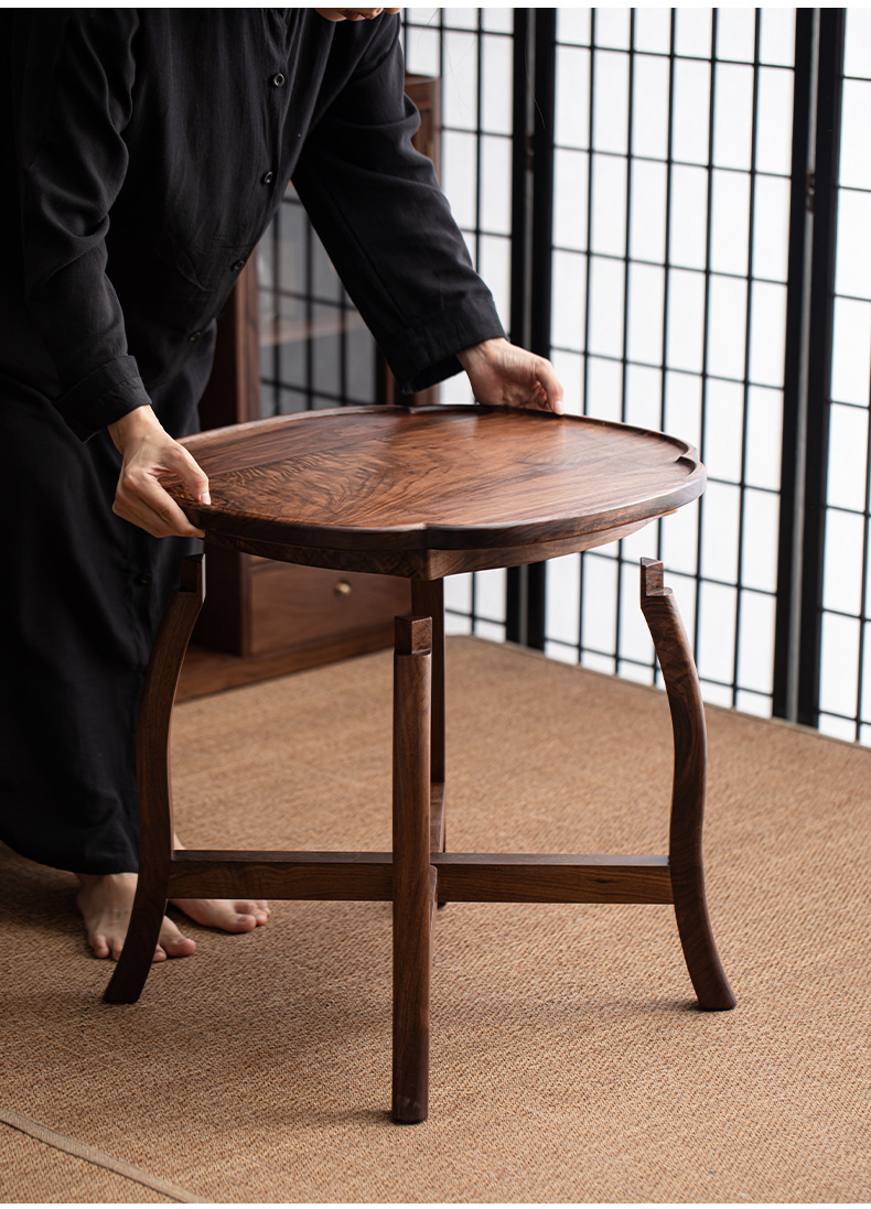 Bàn cà phê gỗ nguyên khối Bắc Âu bàn ban công gia dụng bàn ghế sofa bàn bên cạnh hình tròn nhỏ màu đen Gỗ Óc Chó