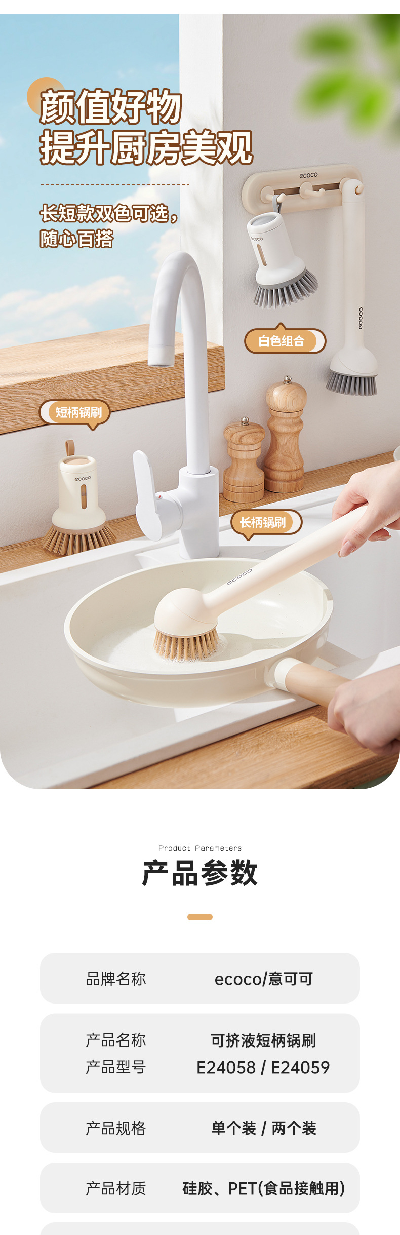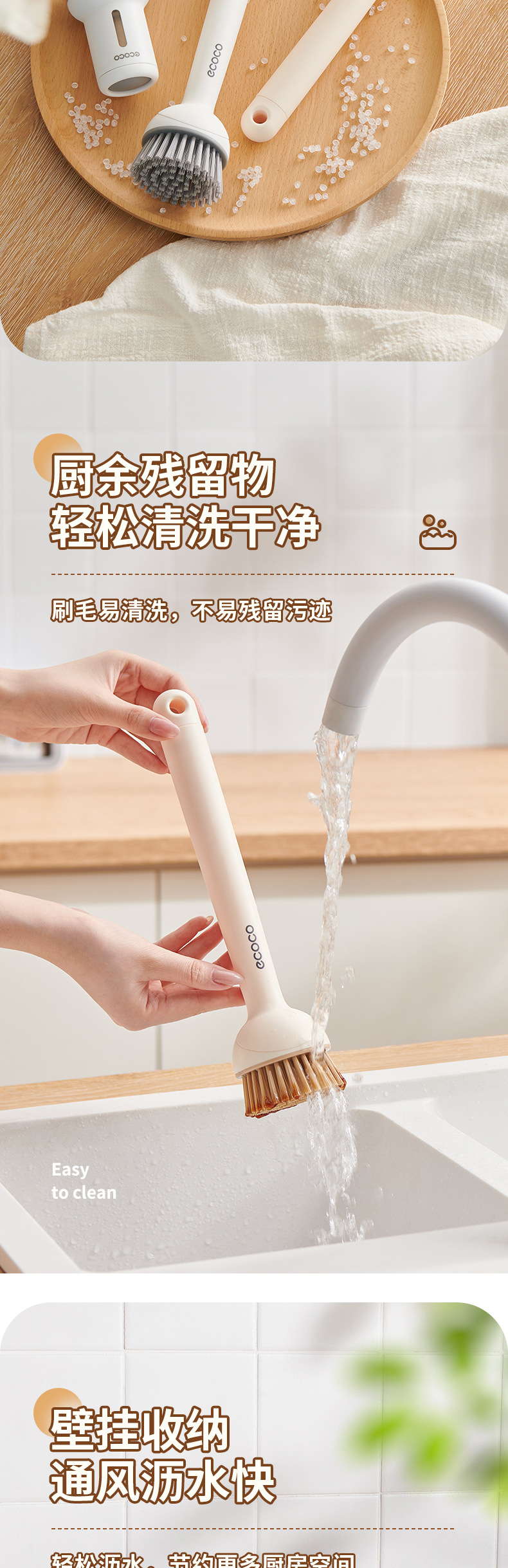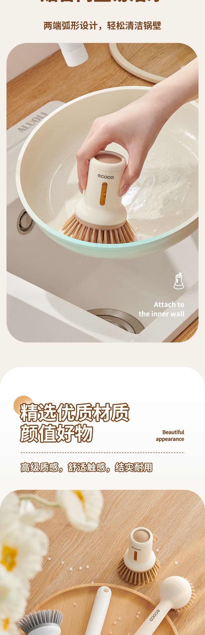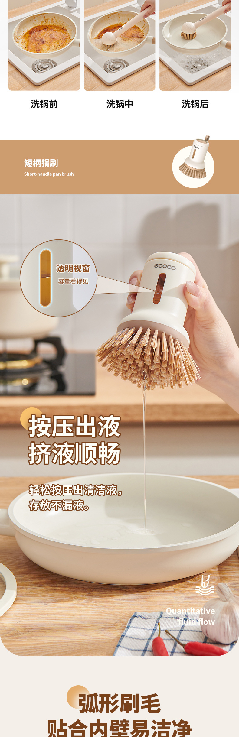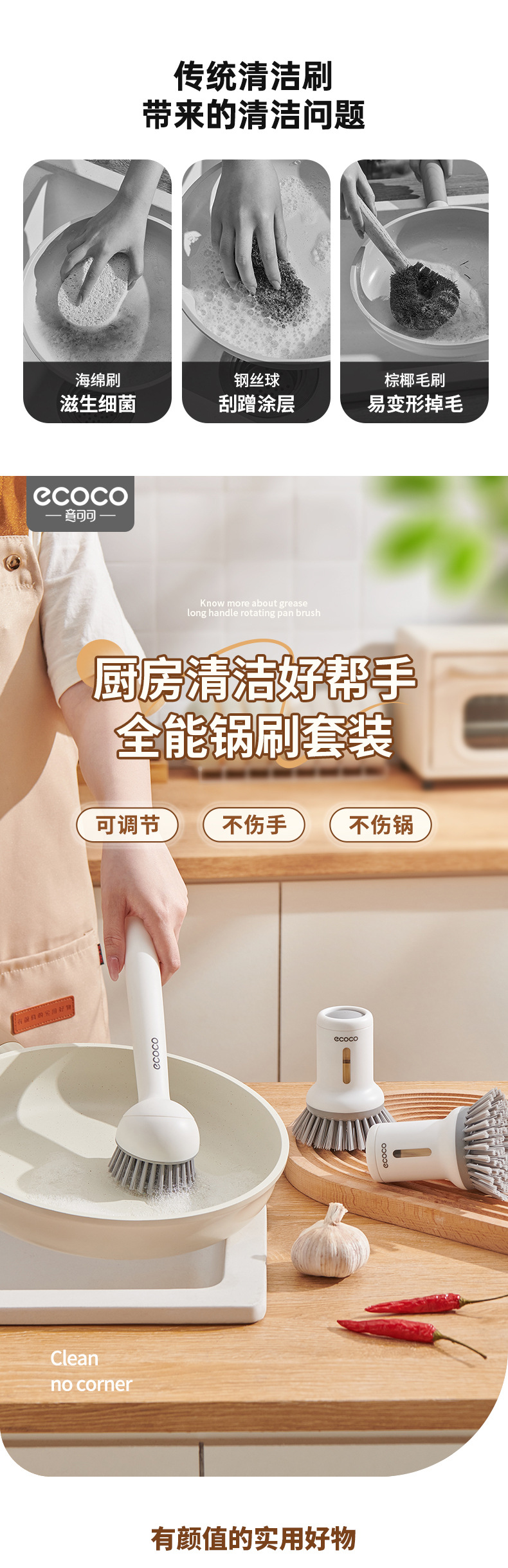 - Bàn chải nồi có thể ép đùn sáng tạo có tay cầm, bàn chải dùng để rửa bát gia đình, tay cầm dài có thể xoay