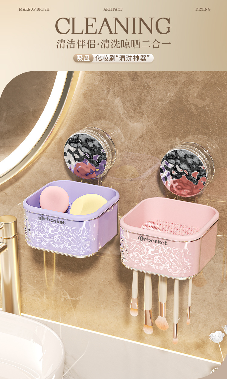 Bàn chải trang điểm Cốc hút, rửa bát, rửa bát tích hợp, rửa và sấy bằng silicon, dụng cụ làm sạch bông phấn Trứng Làm Đẹp, Giá phơi