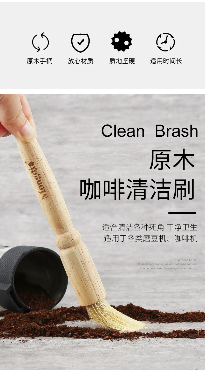 - Bàn chải vệ sinh máy xay cà phê Mongdio, bàn chải vệ sinh tay cầm bằng gỗ tự nhiên cho máy pha cà phê, bàn chải vệ sinh bã cà phê quán cà phê