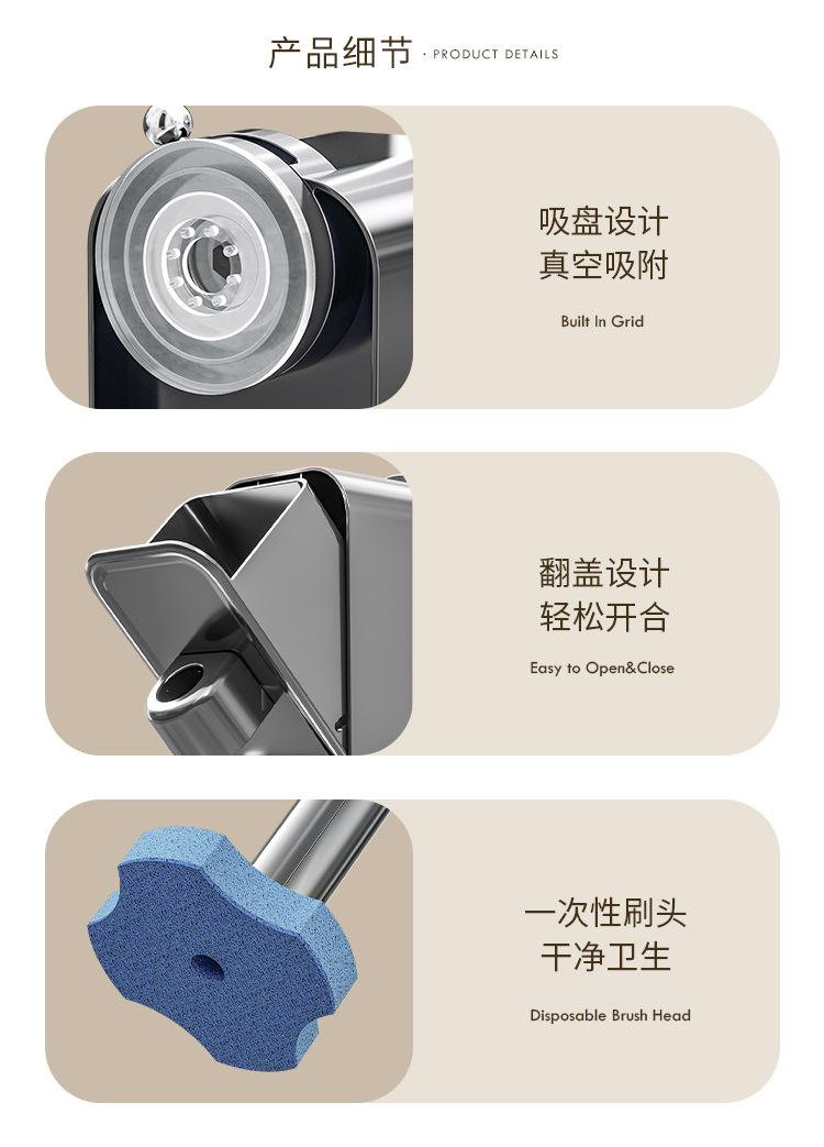 - Bàn chải vệ sinh nhà tắm dùng một lần, hút chân không, không góc chết, mẫu mới, đầu bàn chải thay thế.