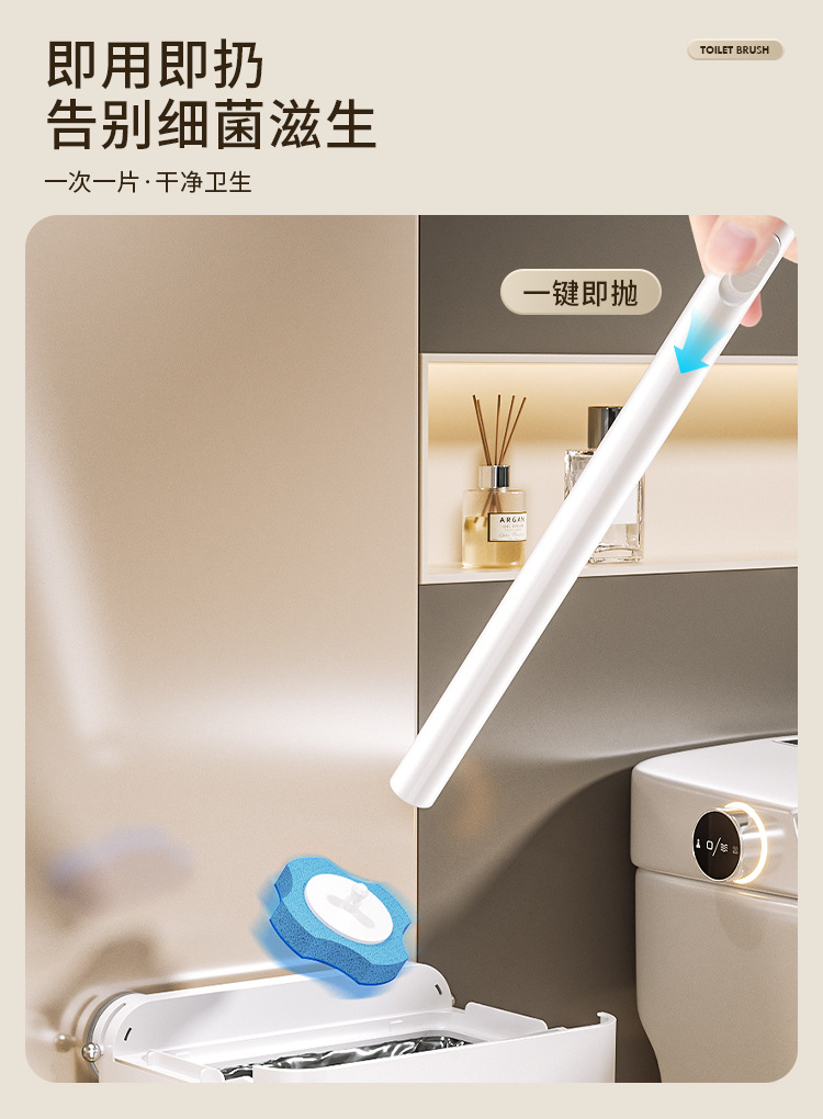 Bàn chải vệ sinh nhà tắm dùng một lần, hút chân không, không góc chết, mẫu mới, đầu bàn chải thay thế.