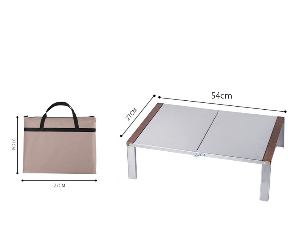 Bàn gấp di động cắm trại dã ngoại 54x27cm Contoose CTS54 thép không rỉ, gỗ Sồi