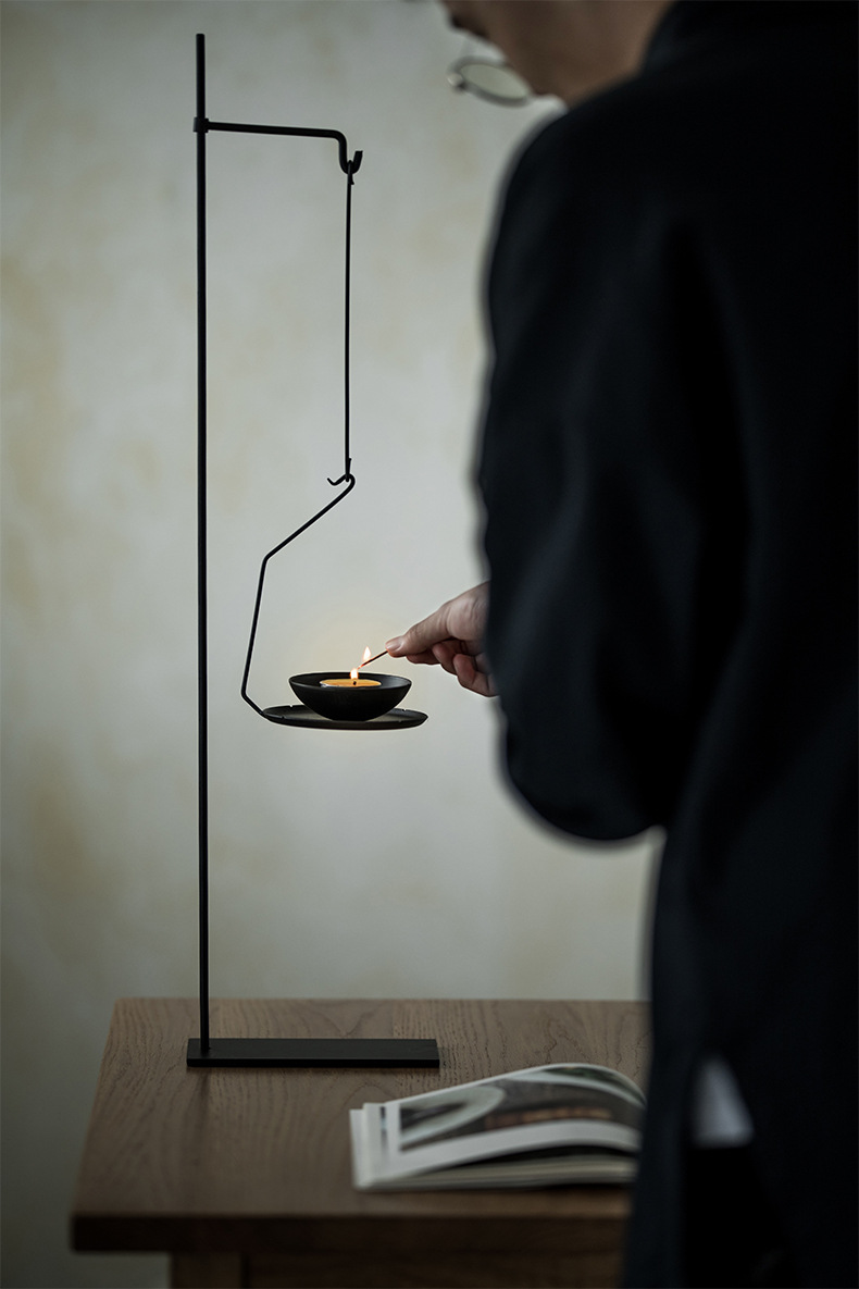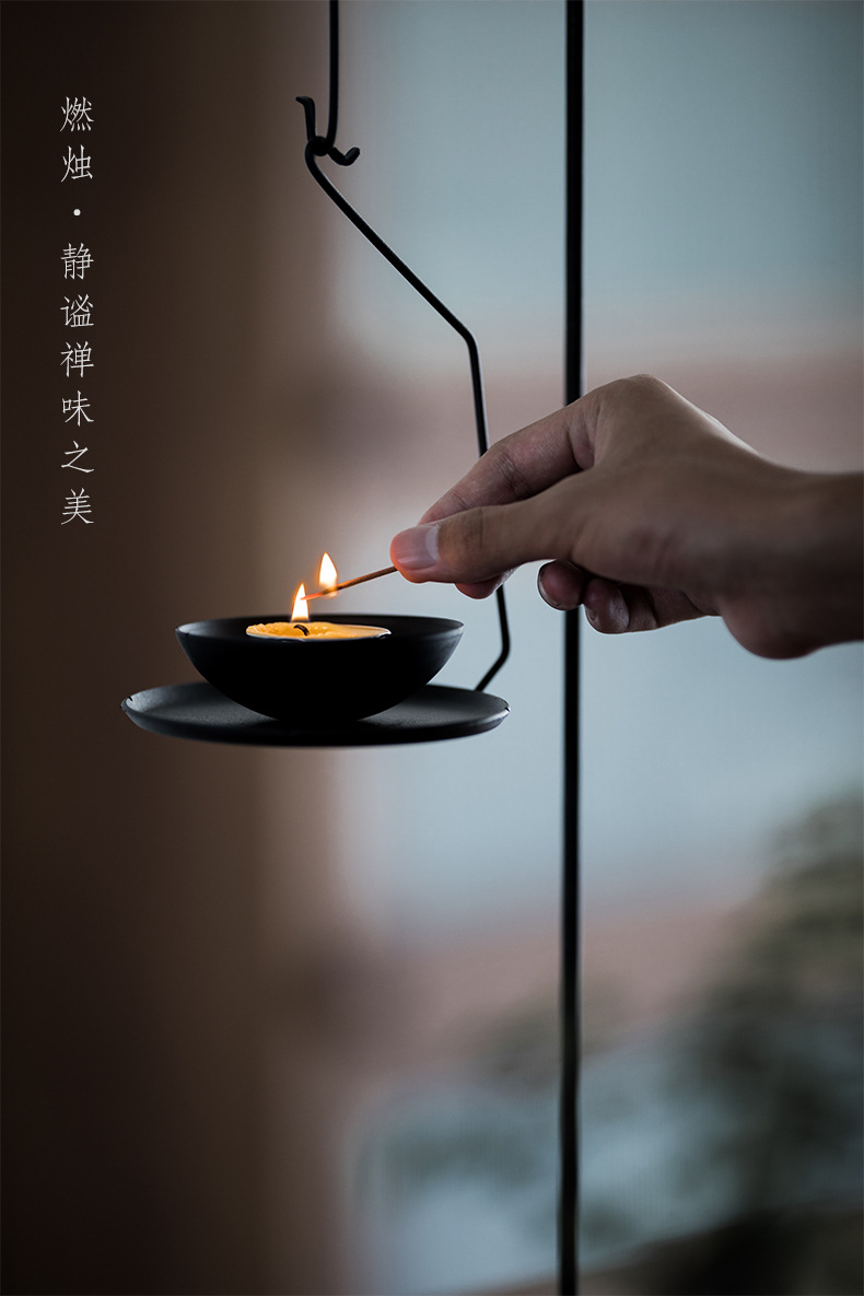 Bàn nến sắt rèn làm bằng tay Bàn nến sắt rèn cổ điển sáng tạo kiểu Nhật Bản Bàn trang trí phụ kiện trà đạo phòng trà