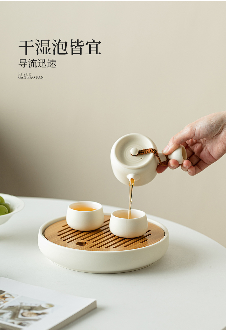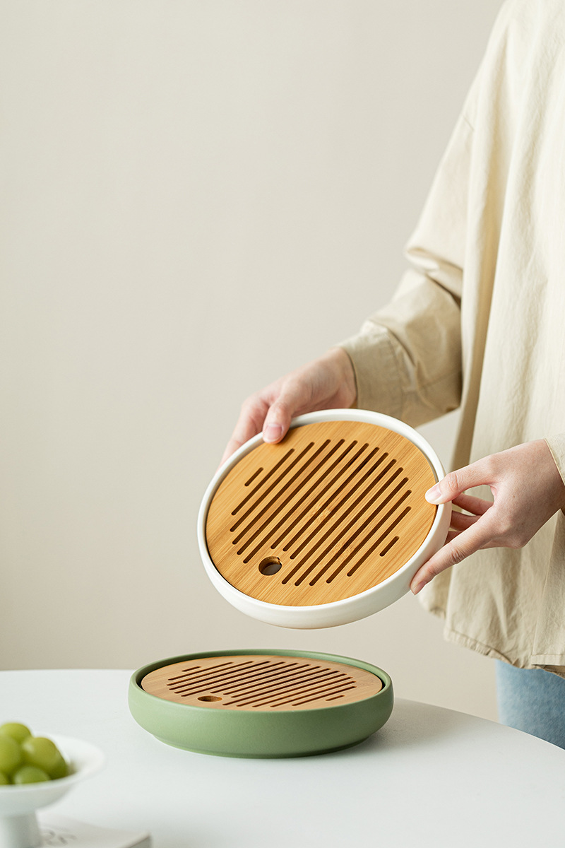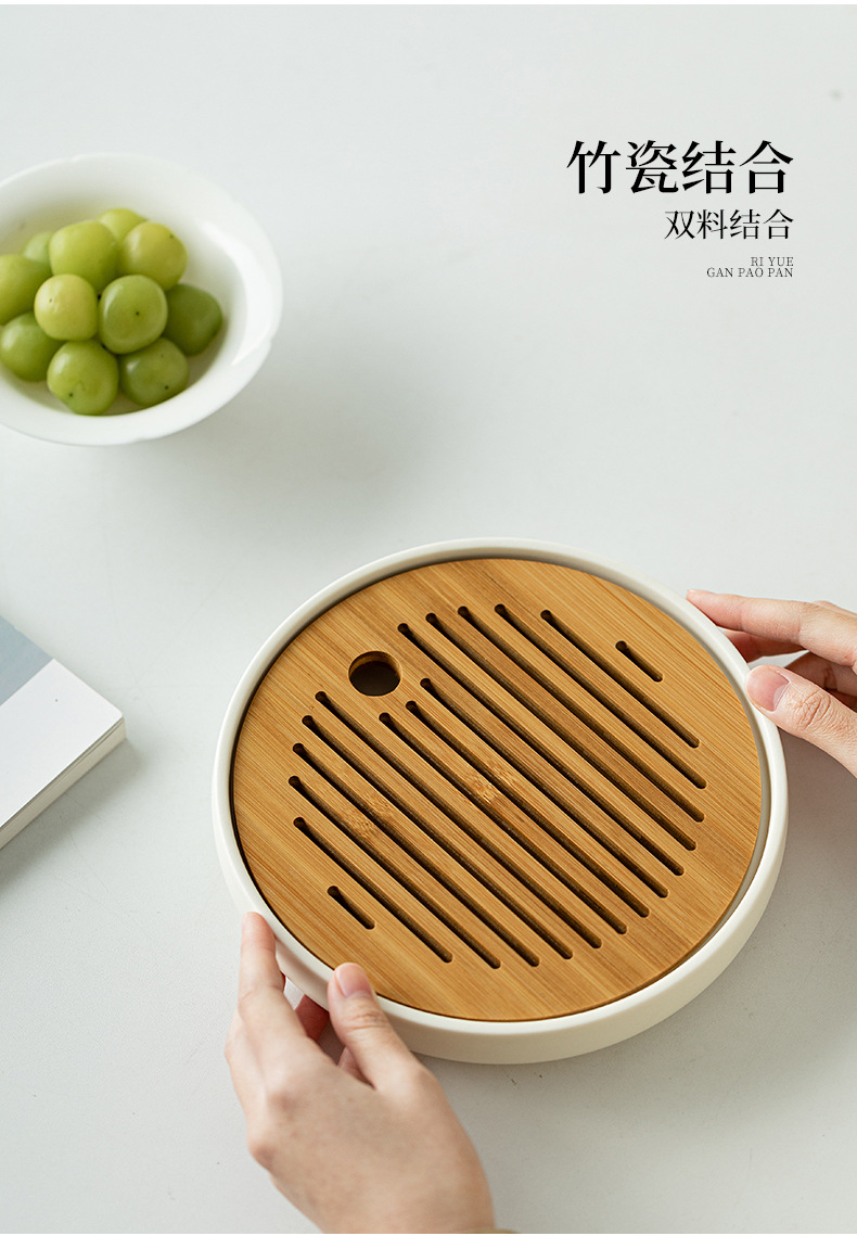 Bàn pha khô mặt trời và mặt trăng khay trà hình tròn bằng gỗ dụng cụ pha trà Kung Fu đơn giản gia dụng